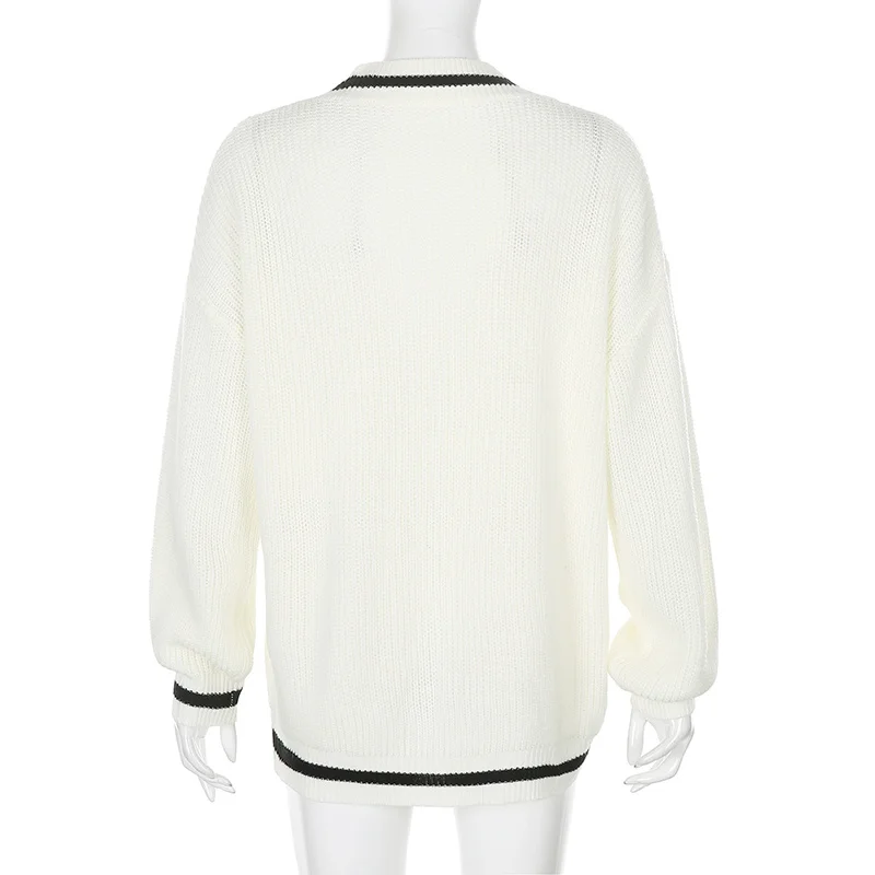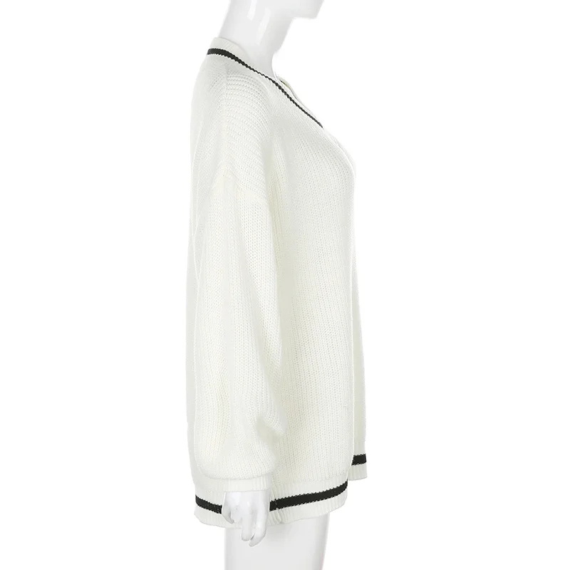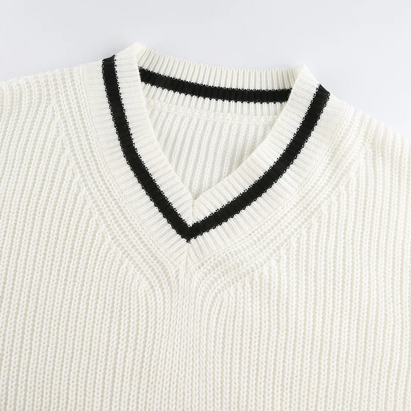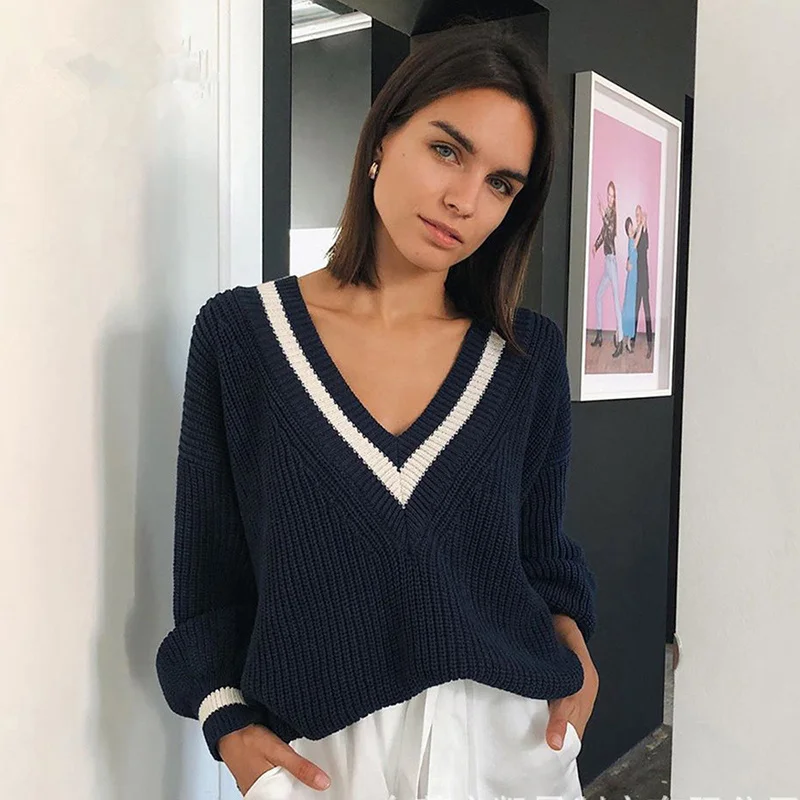 Модный Полосатый свитер в Корейском стиле, Топ с длинным рукавом, свитер с большим воротником, белый Повседневный свитер, женская одежда для осени и зимы