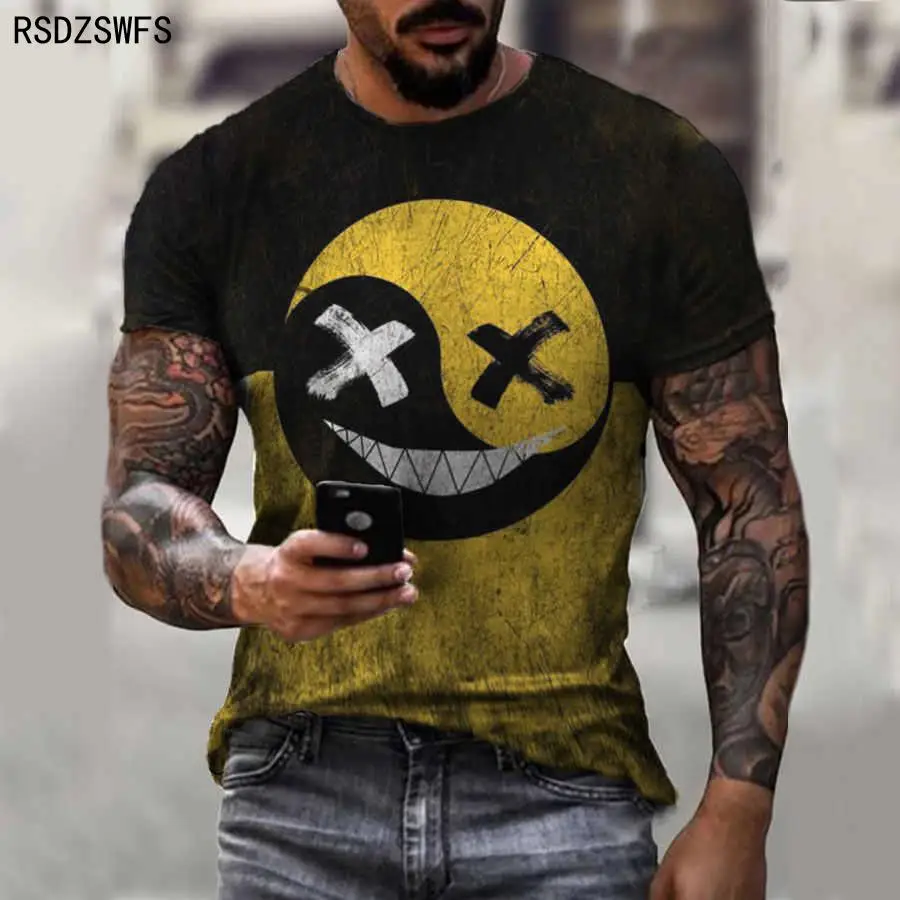 Летняя новая модная трендовая Мужская Повседневная футболка с 3d принтом дьявола и смайликом, Мужская футболка с коротким рукавом и круглым вырезом и 3d принтом