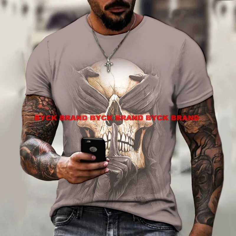 Футболка мужская с 3D-принтом черепа, Модный повседневный топ с кру...