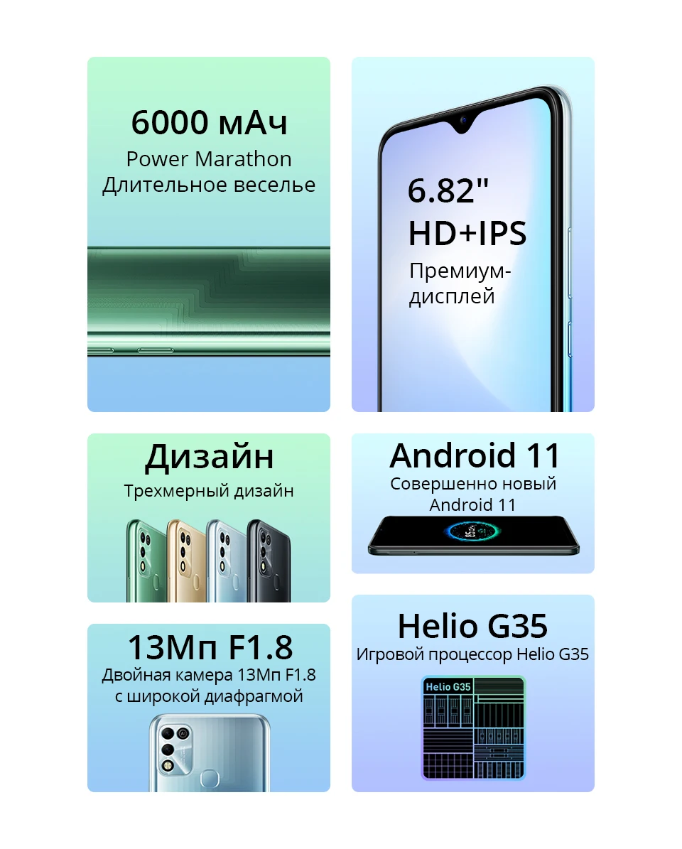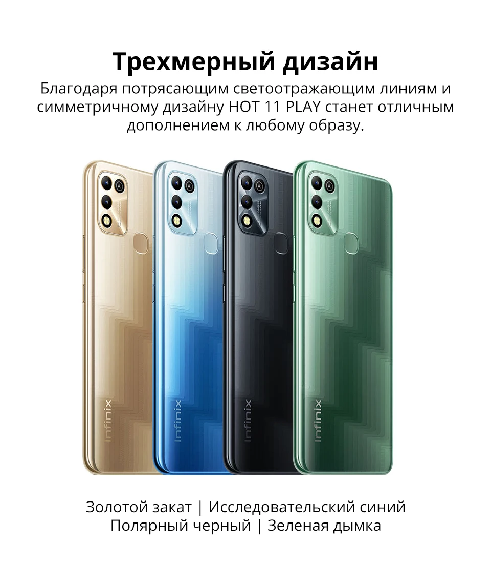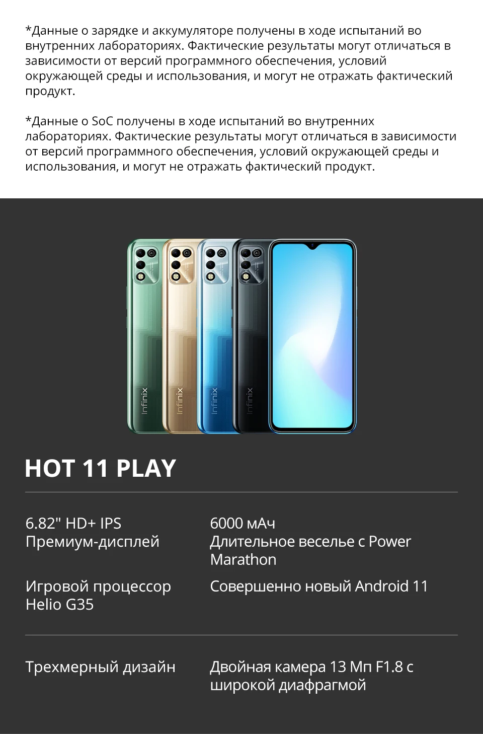 Смартфон Infinix Hot 11 play 4+64GB Игровой Процессор Helio G35 6000 мАч 6.82''HD+IPS Доставка из Москвы Официальная гарантия