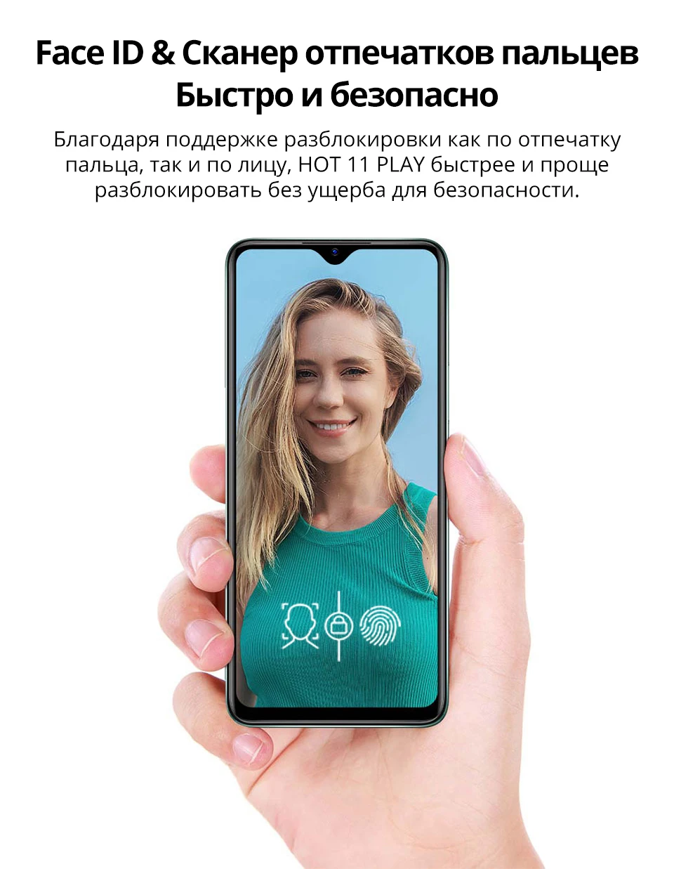 Смартфон Infinix HOT 10 play 2+32GB,распознавание лица и отпечатка ...