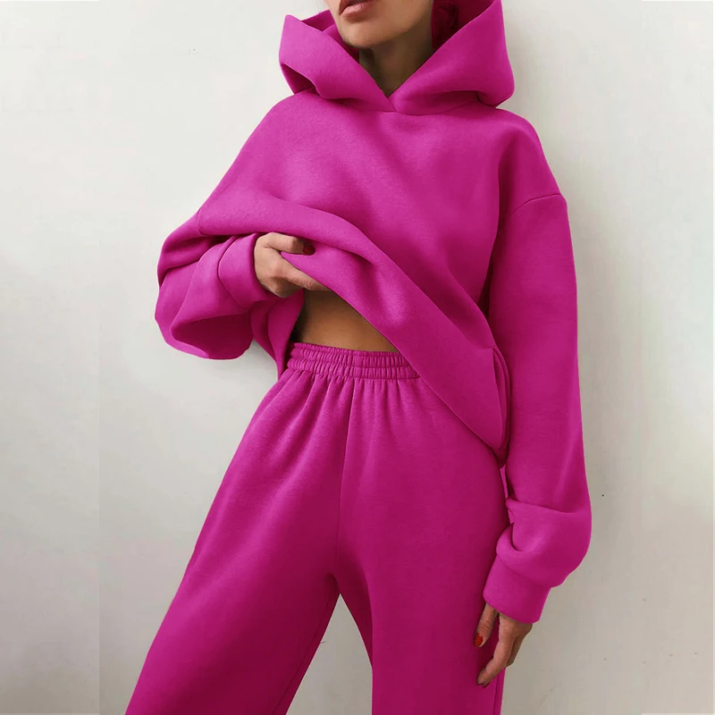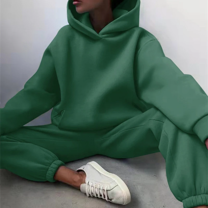 Женский спортивный костюм из двух предметов, теплый флисовый спортивный костюм большого размера на осень и зиму, толстовка с капюшоном и длинные брюки