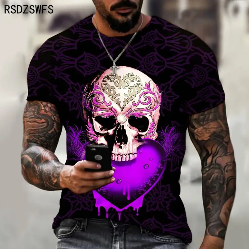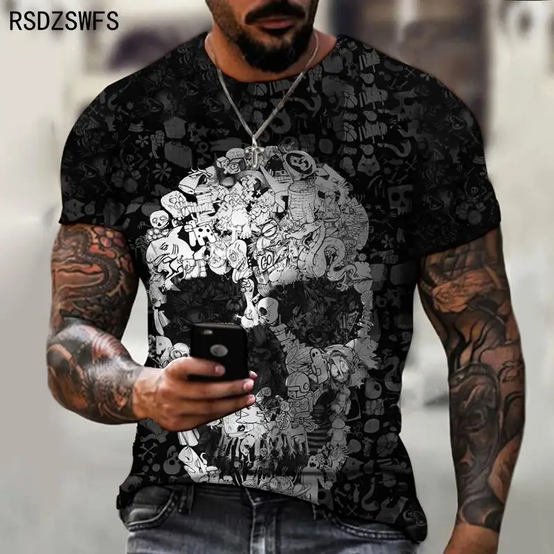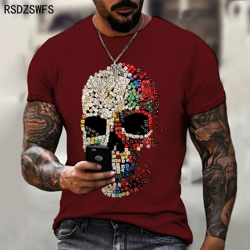 Футболка мужская с коротким рукавом и 3D-принтом черепа, Спортивная дышащая повседневная Уличная одежда в стиле хип-хоп, с круглым вырезом, большие размеры, на лето