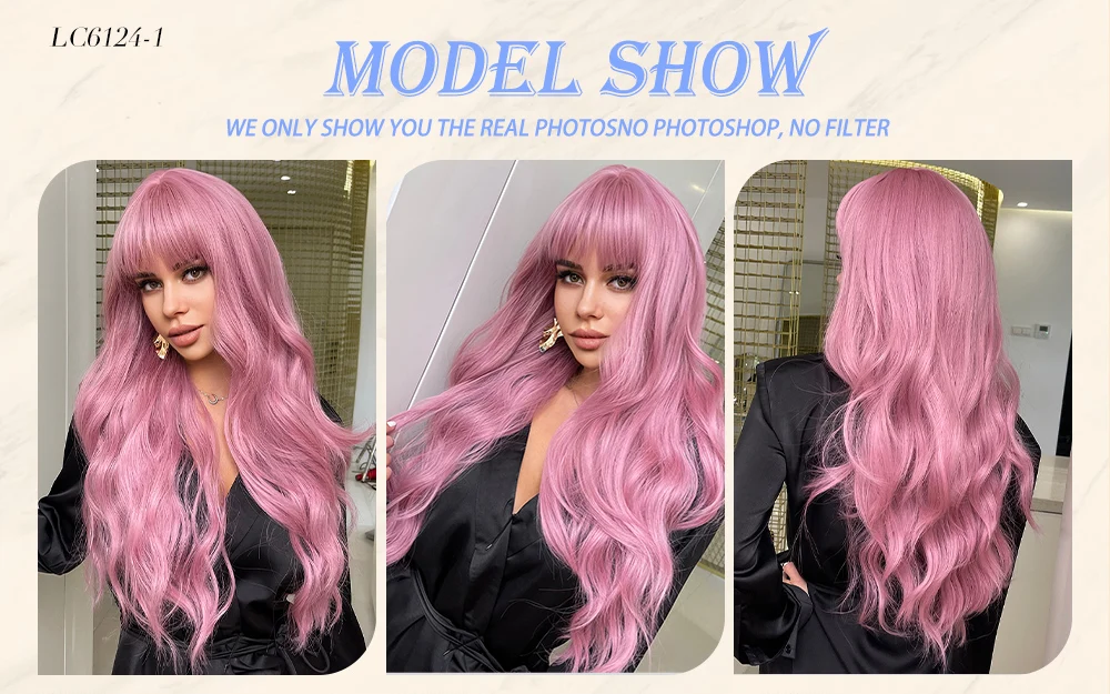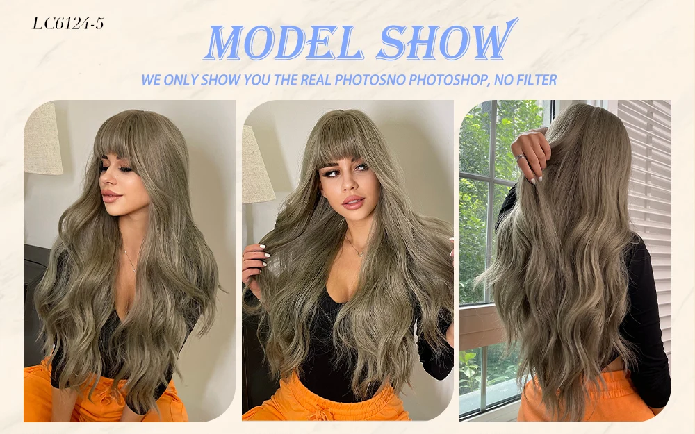 Парики с челкой для женщин, Длинные Синтетические волосы с волнами,...