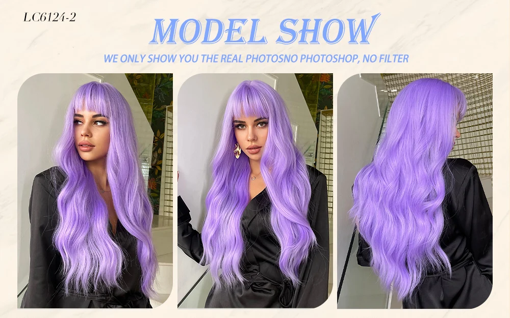 Парики для косплея, длинные, фиолетовые, смешанные, с челкой