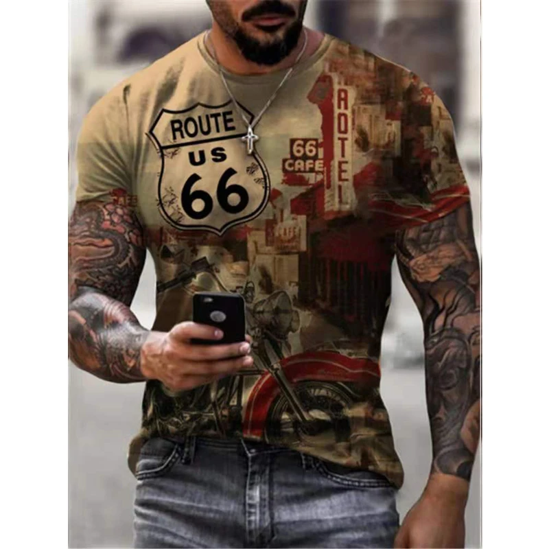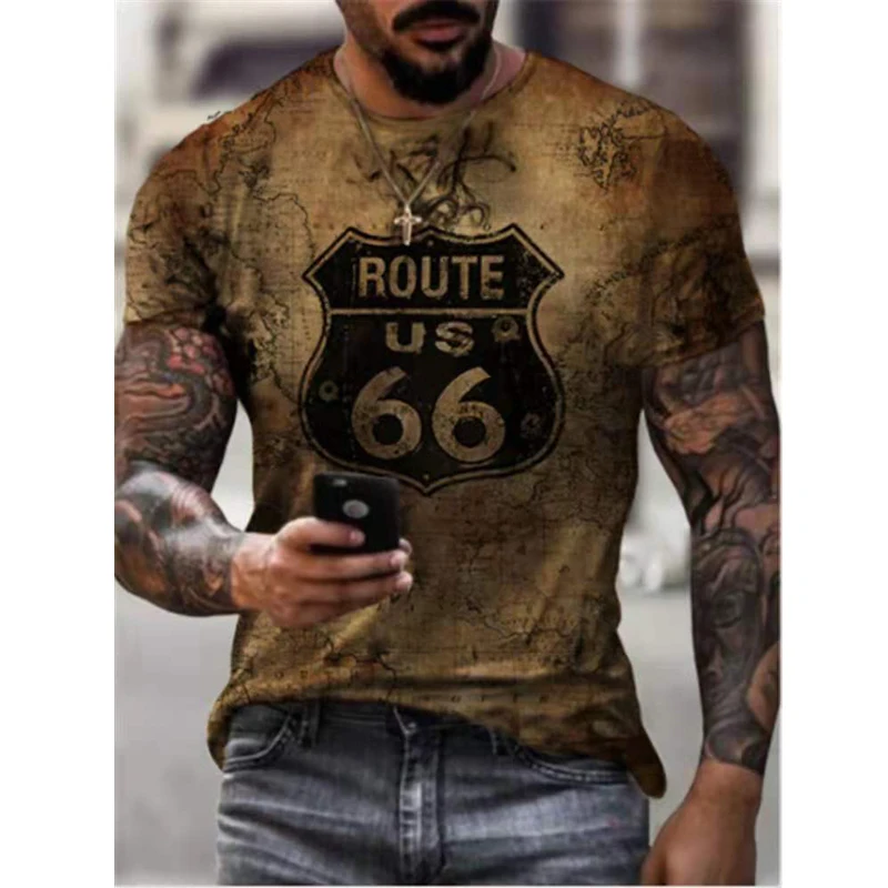 Футболка Route 66 American Road мужская с коротким рукавом, повседневный топ с круглым вырезом, рубашка оверсайз в стиле ретро, лето 2021