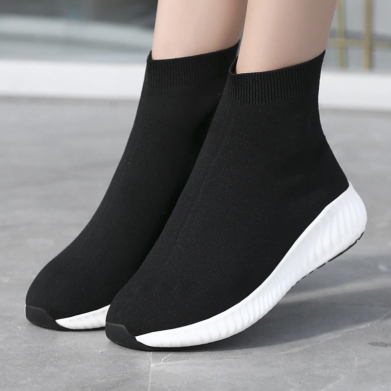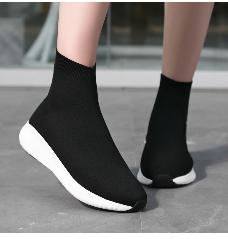 Кроссовки-носки женские из натуральной кожи, брендовые, без застежки, высокие, повседневная обувь для девушек, осень