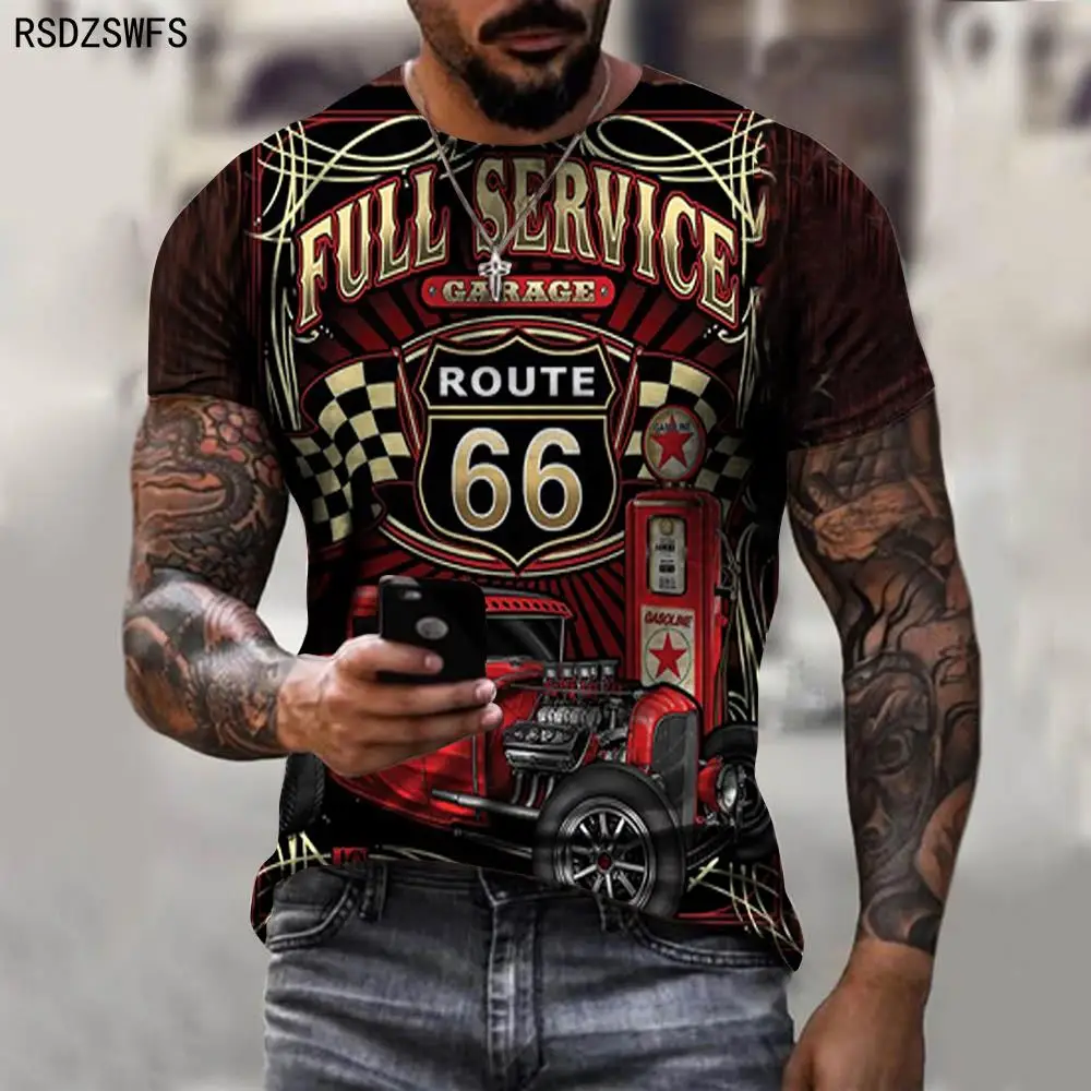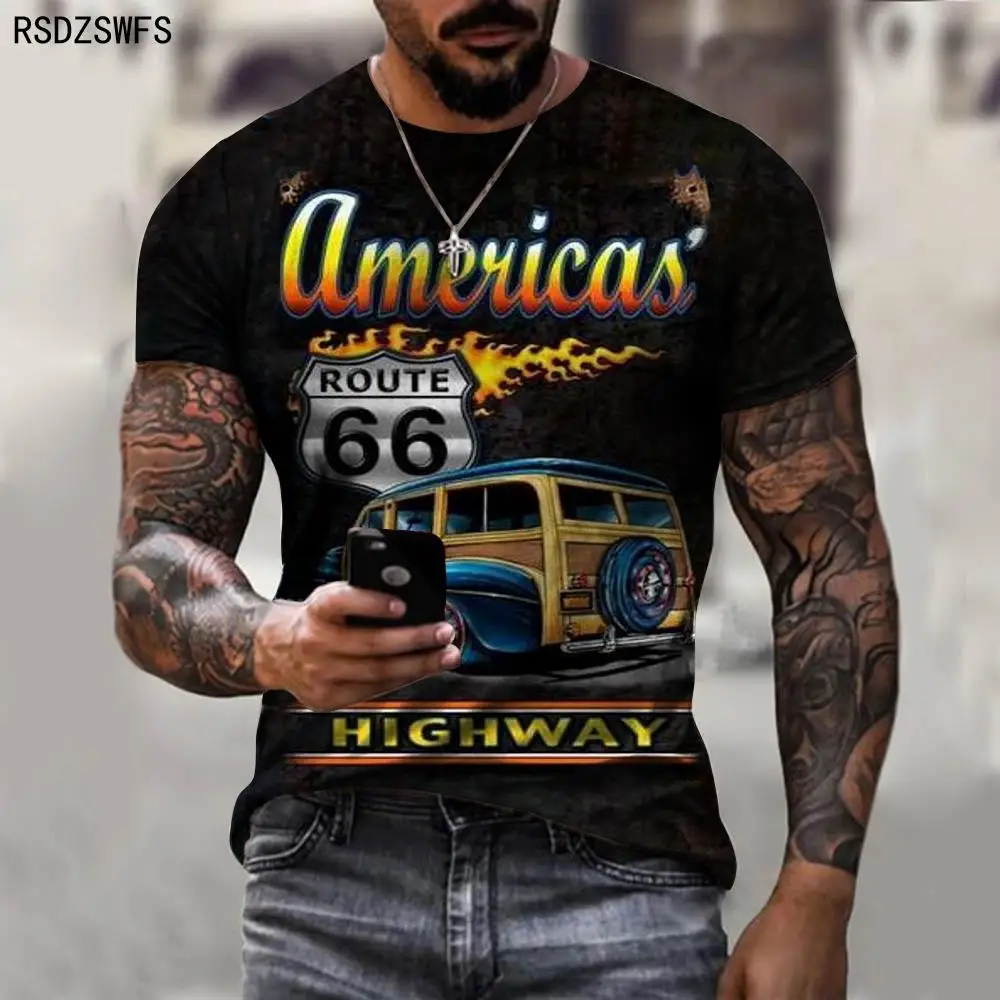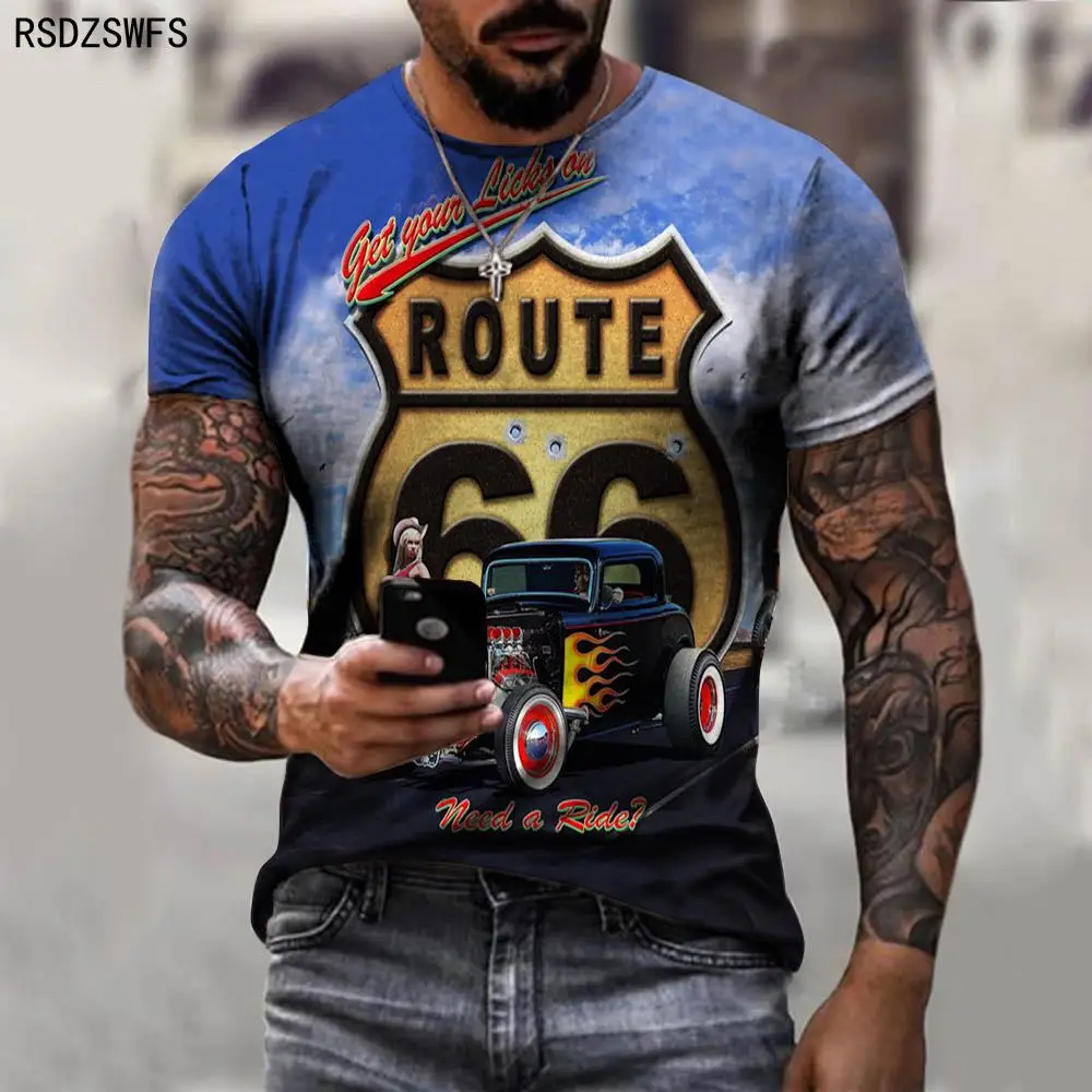 Летняя Новинка 2021, Мужская Уличная футболка Route 66 с 3D принтом...