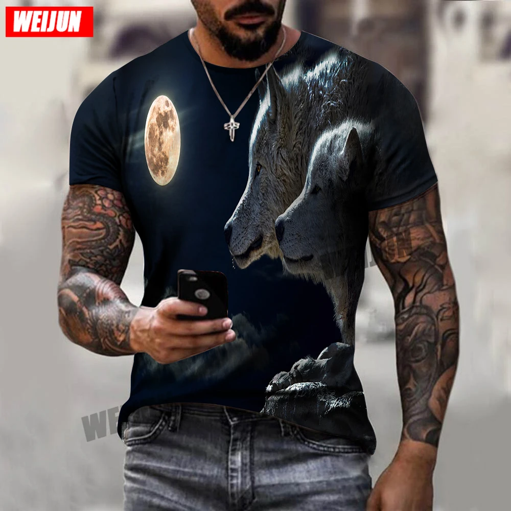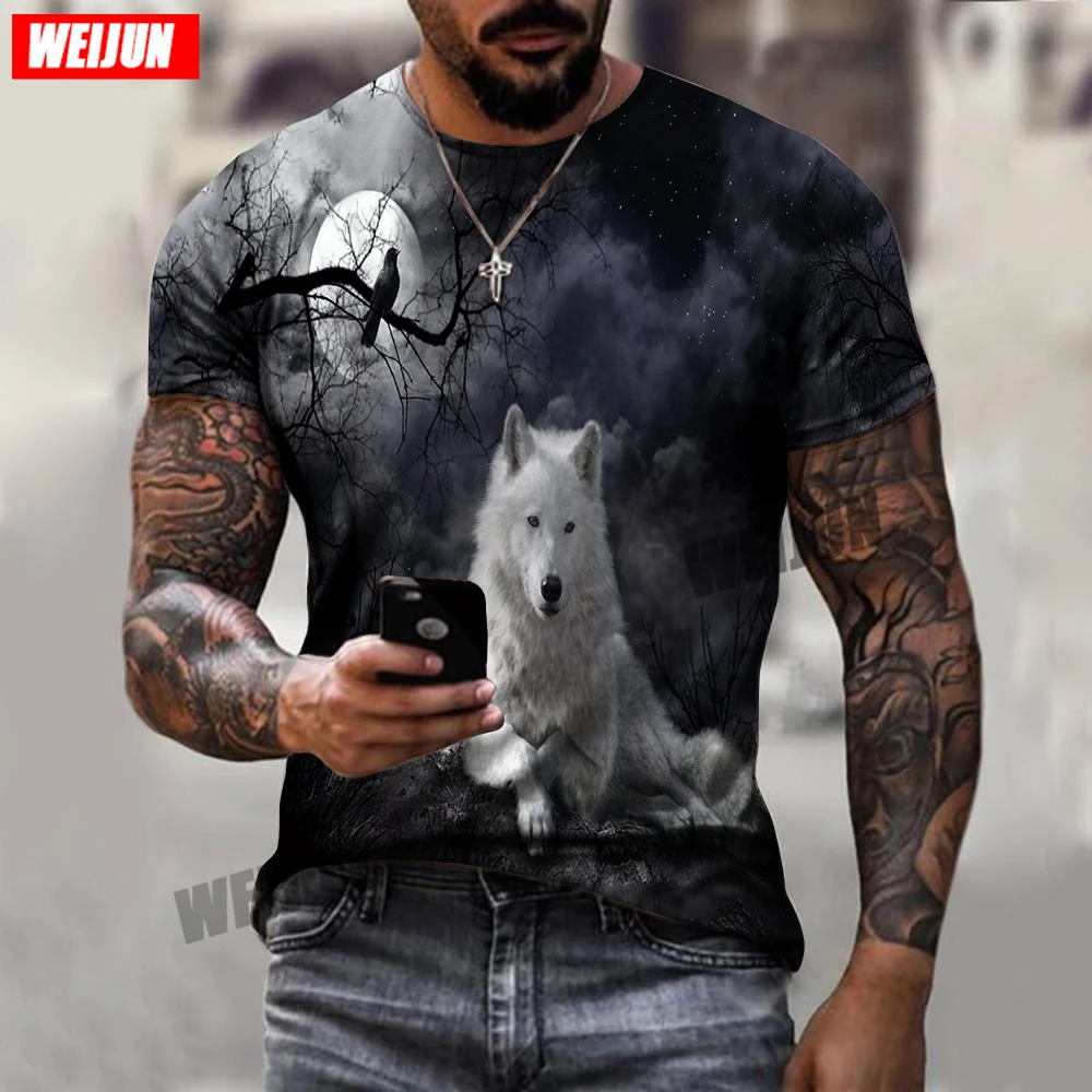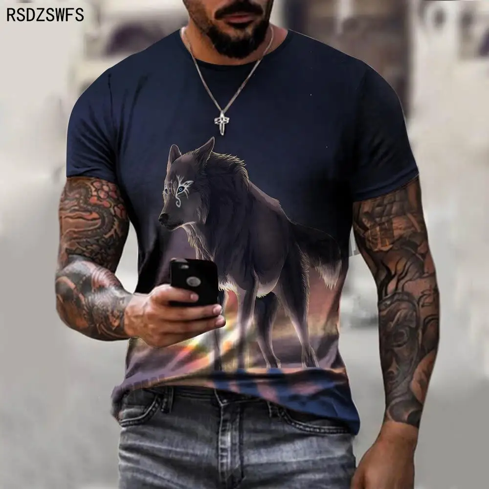 Крутая Летняя мужская футболка с 3D принтом, новинка 2021, Мужская Спортивная повседневная футболка с круглым вырезом и коротким рукавом с изображением волка, одежда с