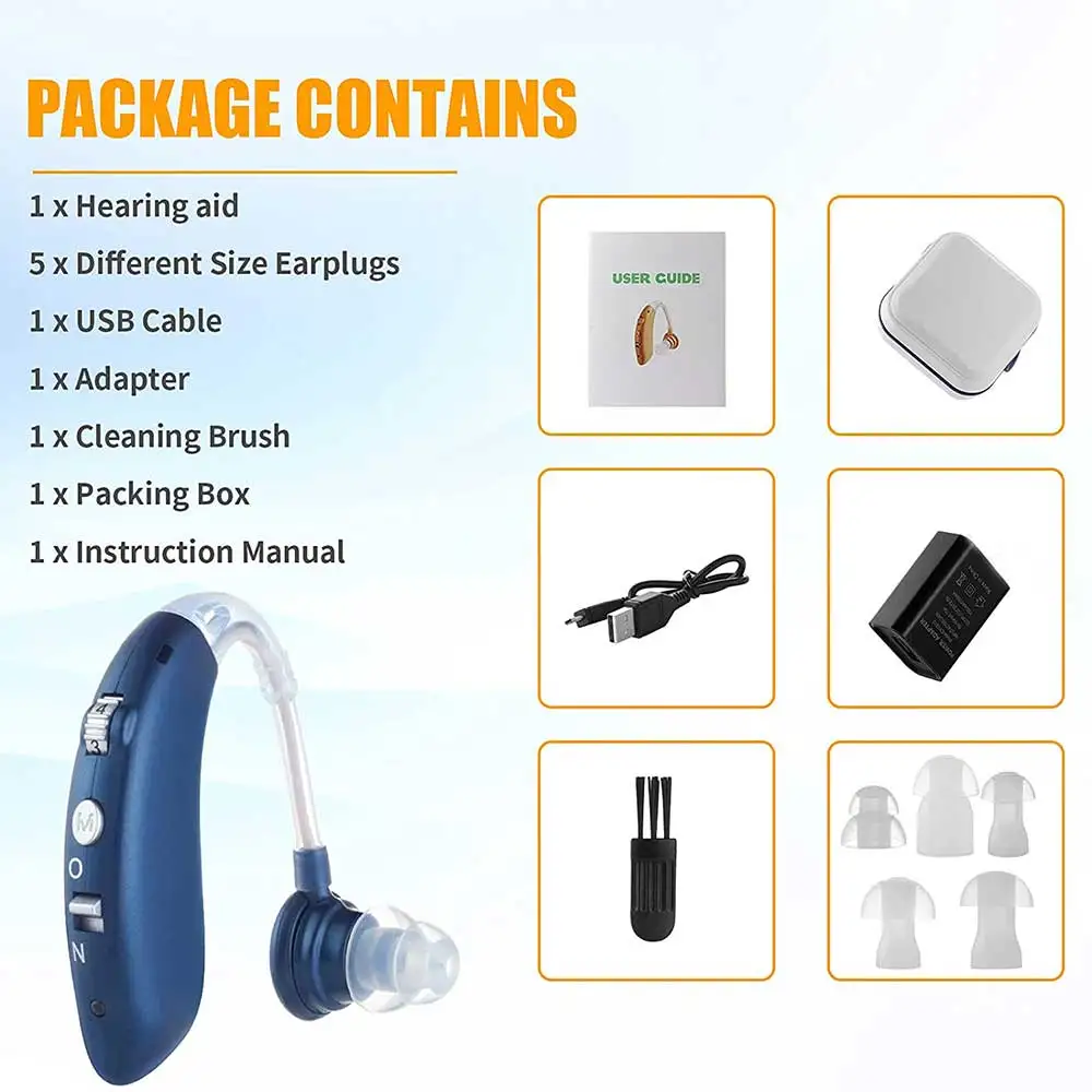 Bluetooth-слуховой аппарат, усилитель звука для глухих людей, USB-слуховой аппарат для пожилых людей, мини-перезаряжаемый Регулируемый сигнал вызова