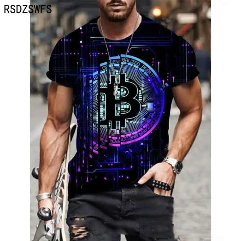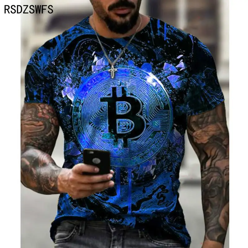 Модная футболка с 3D-принтом биткоина для мужчин, летняя уличная од...