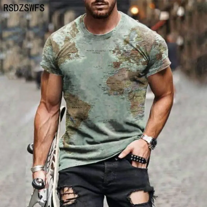 Мужская Повседневная футболка с принтом земли, модная дышащая уличн...