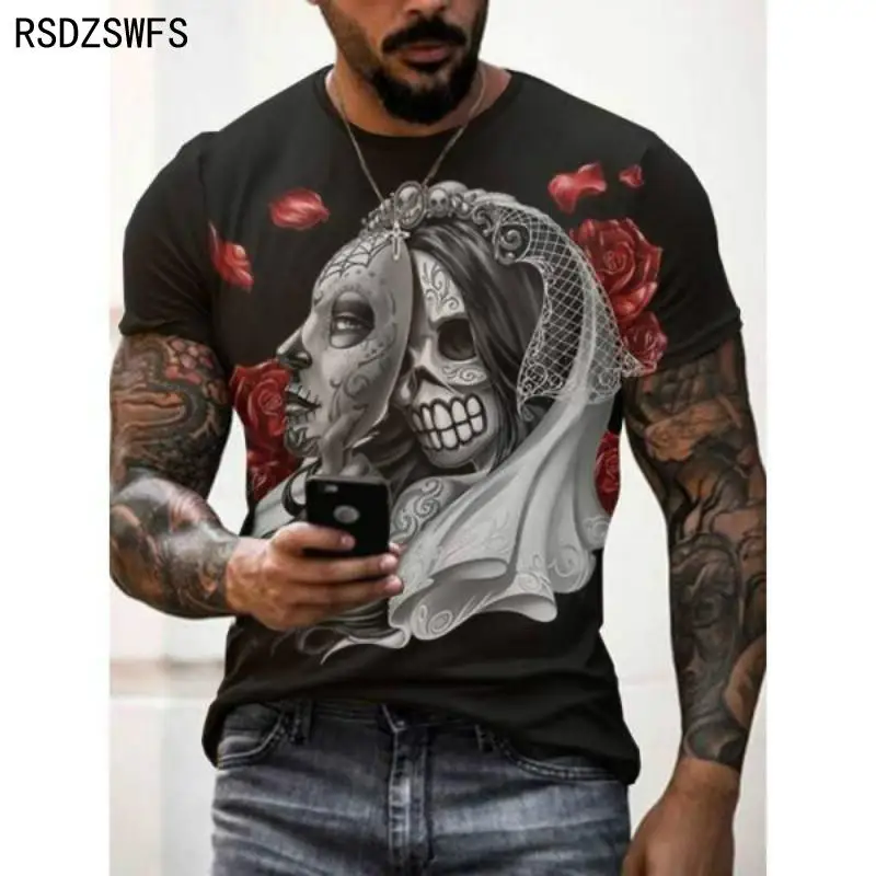 Футболка мужская с 3D-принтом черепа и зомби, модная уличная одежда...