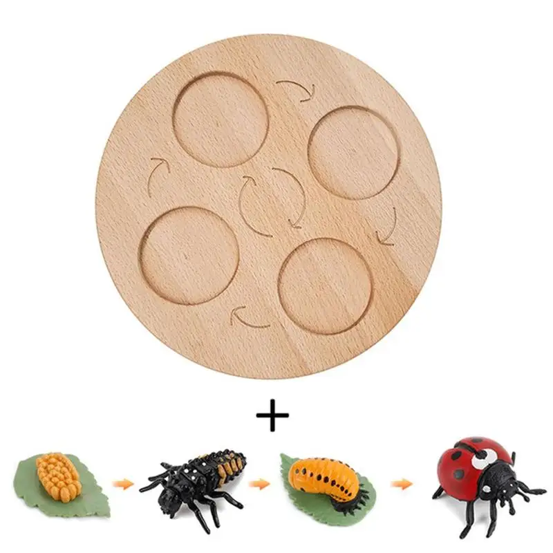 Деревянная доска Монтессори с циклом жизни животных, Детские вспомогательные материалы, развивающие игрушки для роста растений, Обучающие игрушки, научный жизненный цикл P4d3