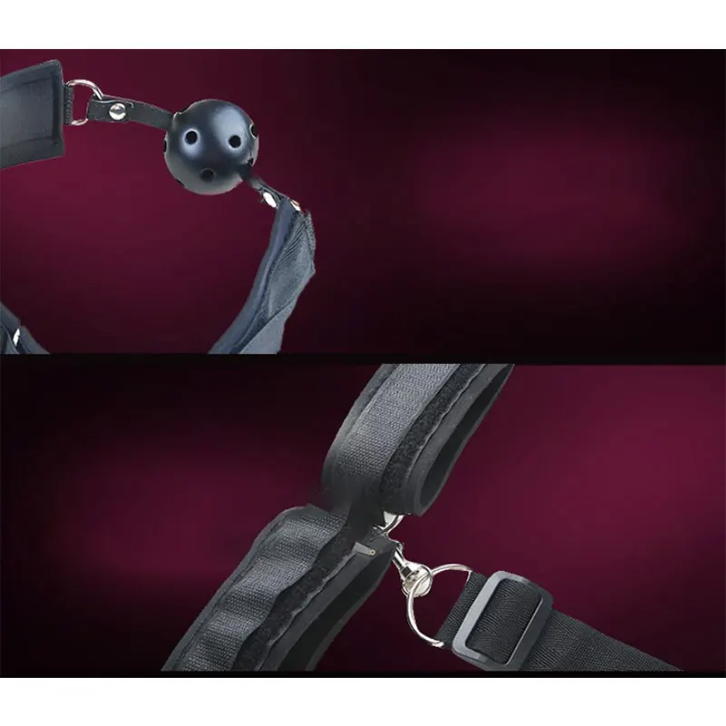 Набор для связывания с ремешком под кроватью, кляп, наручники, фети...