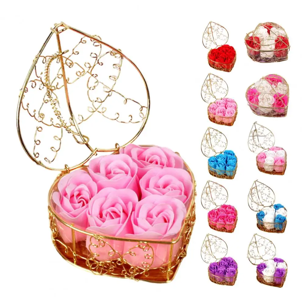 1 Набор искусственных цветов, кованое железо, вечное мыло, цветок розы в изысканной железной коробке, романтический подарок на День святого Валентина для дома