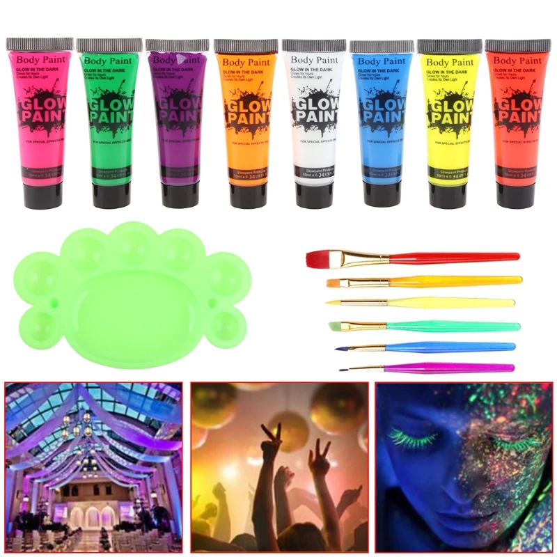 7 трубок 25 мл УФ светящийся черный свет светящаяся краска для лица...