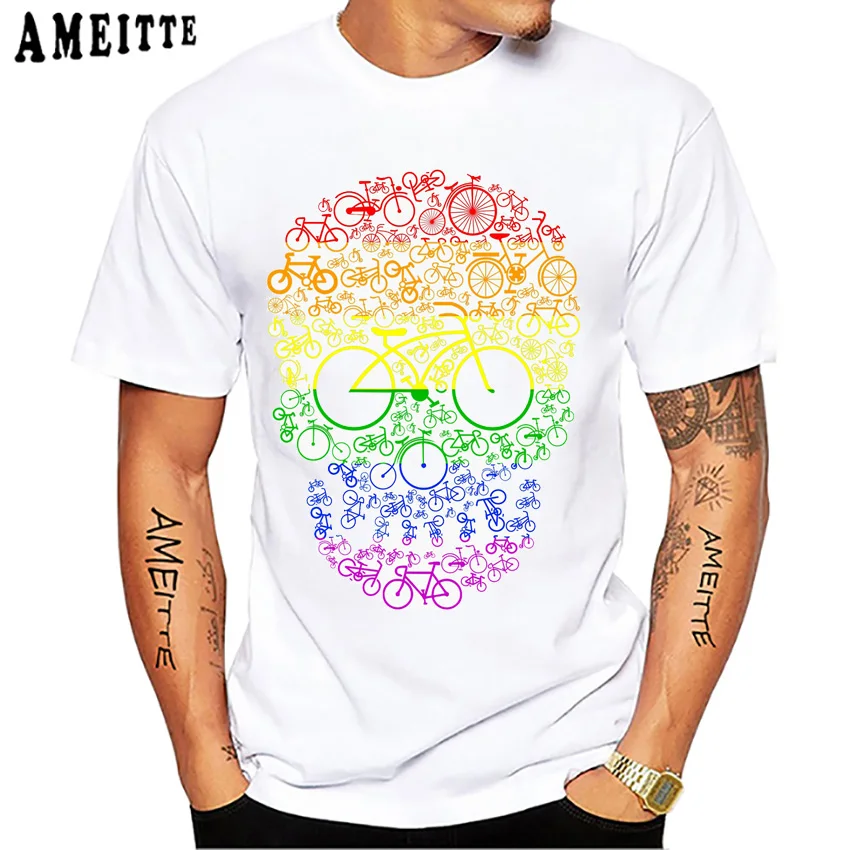 Футболка мужская Радужная с коротким рукавом, тенниска для велоспорта, дизайнерская майка в стиле Харадзюку, Повседневная рубашка в стиле хип-хоп, цвет белый, лето
