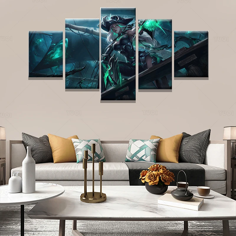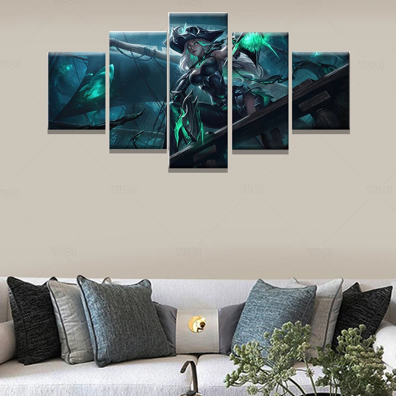 5 панелей холст печать игра плакат DotA 2 Kunkka пиратский корабль ...