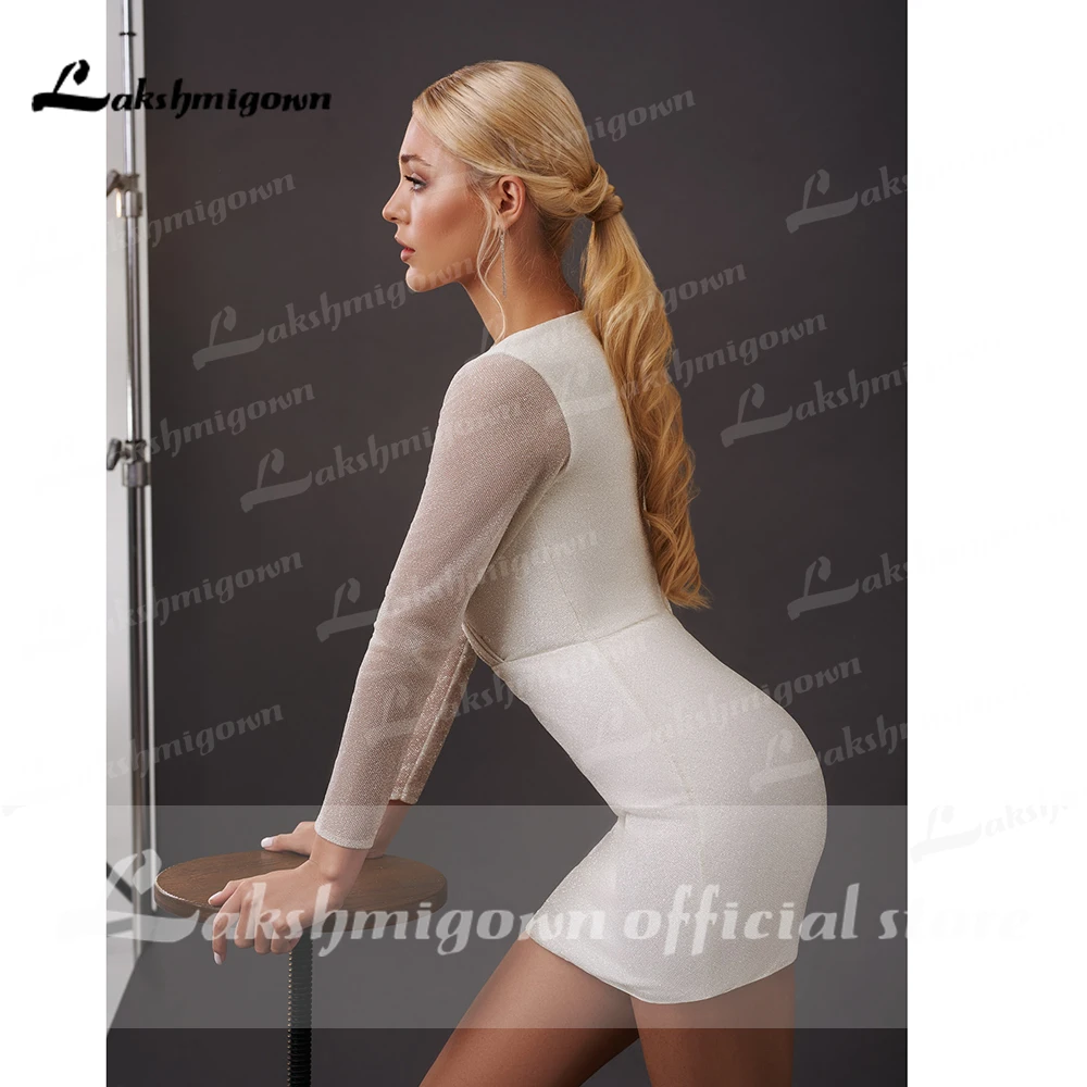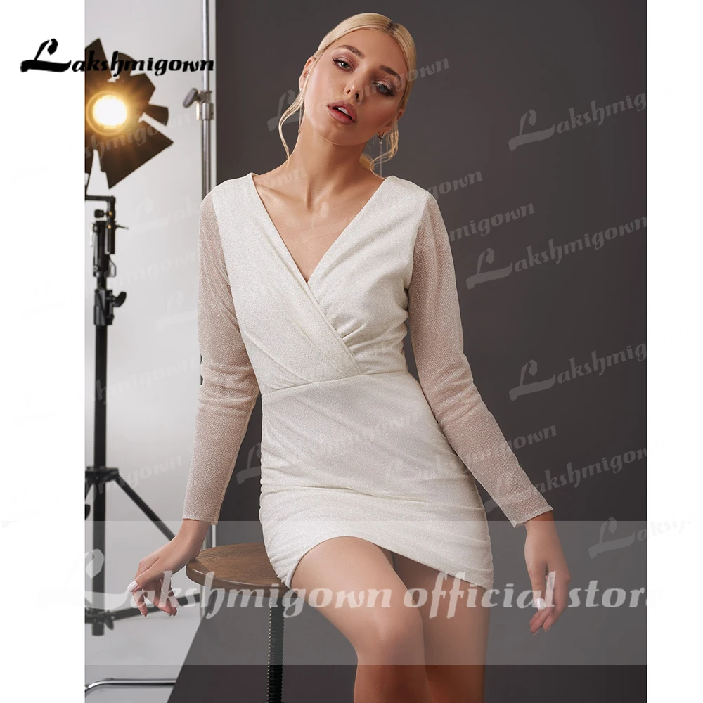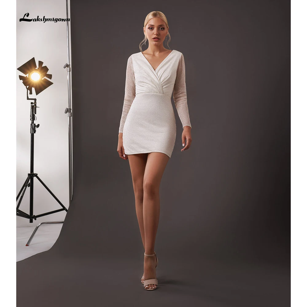 Соблазнительные Короткие свадебные платья-футляры 2022, свадебные платья с длинным рукавом, V-образным вырезом, фатиновое мини-платье для вечеринки, свадьбы