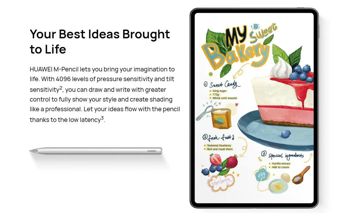 HUAWEI M-Pencil позволяет воплотить ваше воображение в жизнь. С 4096 уровнями чувствительности и наклона давления