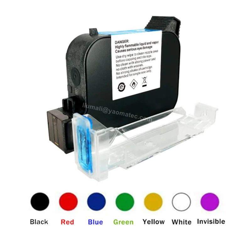 1: типы: Быстросохнущий картридж (YAOMATEC B уровень)2: чернила: растворяющие Быстросохнущие чернила3: Емкость: 42 мл4: Цвет: черный/красный/зеленый/синий/белый/желтый/невидимый5: количество принтов: можно напечатать 800000 символов; Можно напечатать 1200 страниц бумаги формата А4 (5% на лист), прочный6: Напряжение: 9,6 V-10,8 V7: ширина импульса: 120 ~ 180 мм8: DPI: 600 DPI9: Срок службы: 6 месяцев (рекомендуется купить 1-2 за один раз из-за срока службы 6 месяцев, рассчитать срок службы со дня оплаты.Преимущество:1: выбитый на ткани красочные. (12,7 мм одна голова один цвет за один раз)2: Печать гладкая, чернила не блокируют выход чернил.3: прочный и постоянный, если вы не используете спирт или химическую жидкость для стирания.4: чернила-это Быстросохнущие чернила. После печати чернила для письма высушиваются немедленно.5: чернильный картридж не варится во время использования, и он не повредит машину.Область применения:"Подходит для портативных струйных принтеров, пожалуйста, не покупайте, если ваш принтер онлайн струйный принтерПечатные материалы: бумага, картонная коробка, картонная коробка с пластиковой пленкой, пластик, ткань, волокно, ПВХ, металл, трубопровод, камень, пластик, пленка и другие неводные материалы.Примечание: Не рекомендуется печатать на стекле.