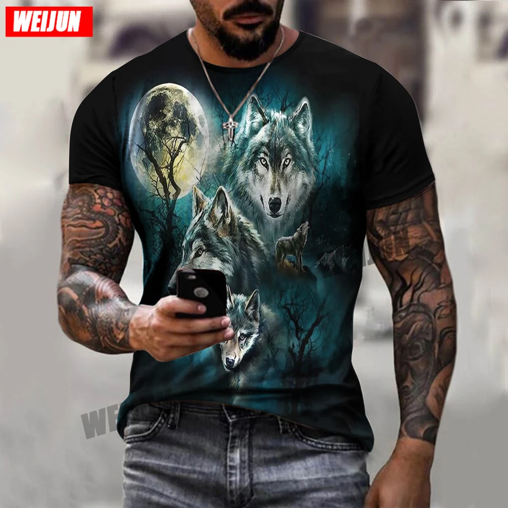 Крутая Летняя мужская футболка с 3D принтом, новинка 2021, Мужская Спортивная повседневная футболка с круглым вырезом и коротким рукавом с изображением волка, одежда с