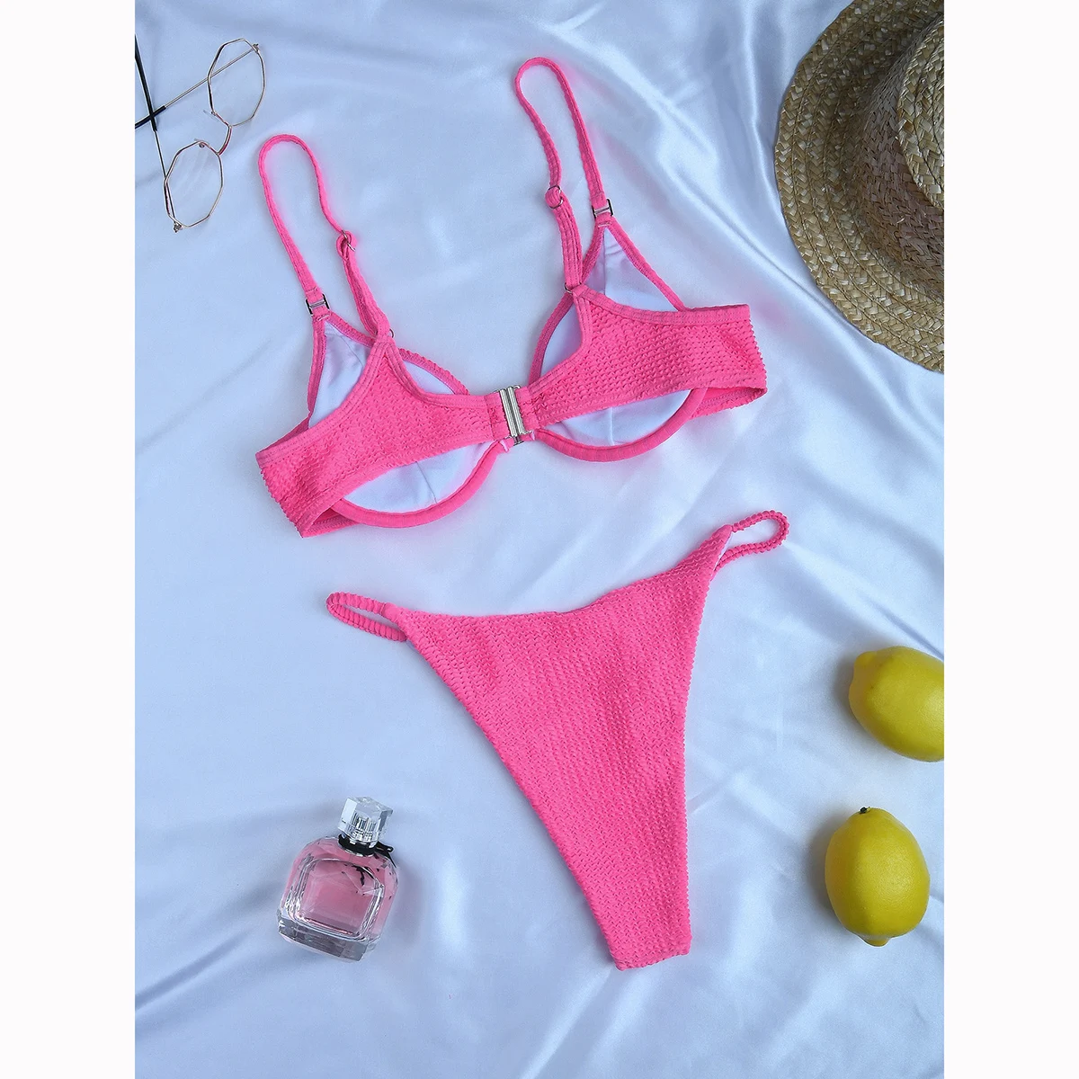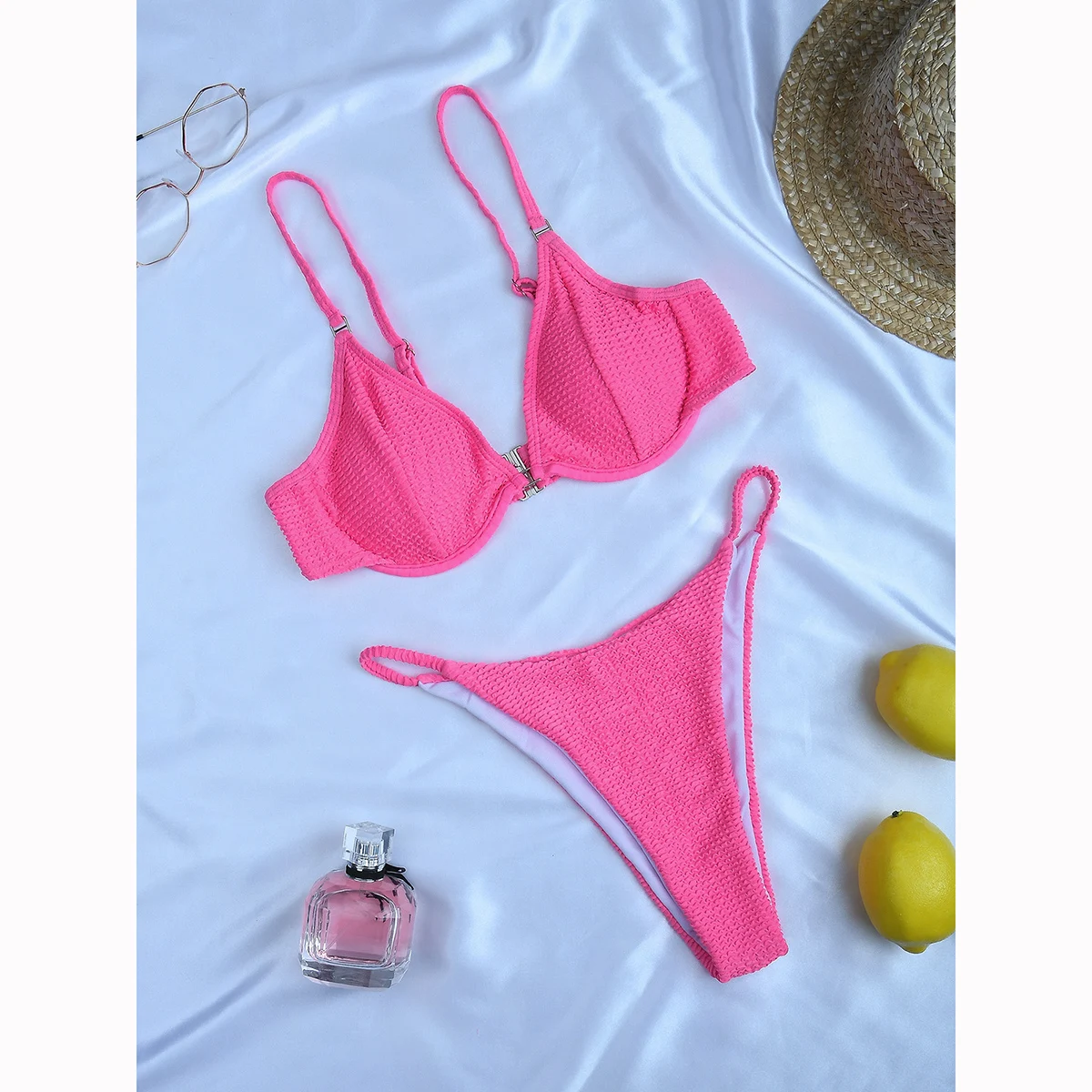 2021 сексуальный бикини пуш-ап бразильский комплект бикини Однотонный женский купальник в рубчик мягкий женский купальник купальный костюм Пляжная одежда