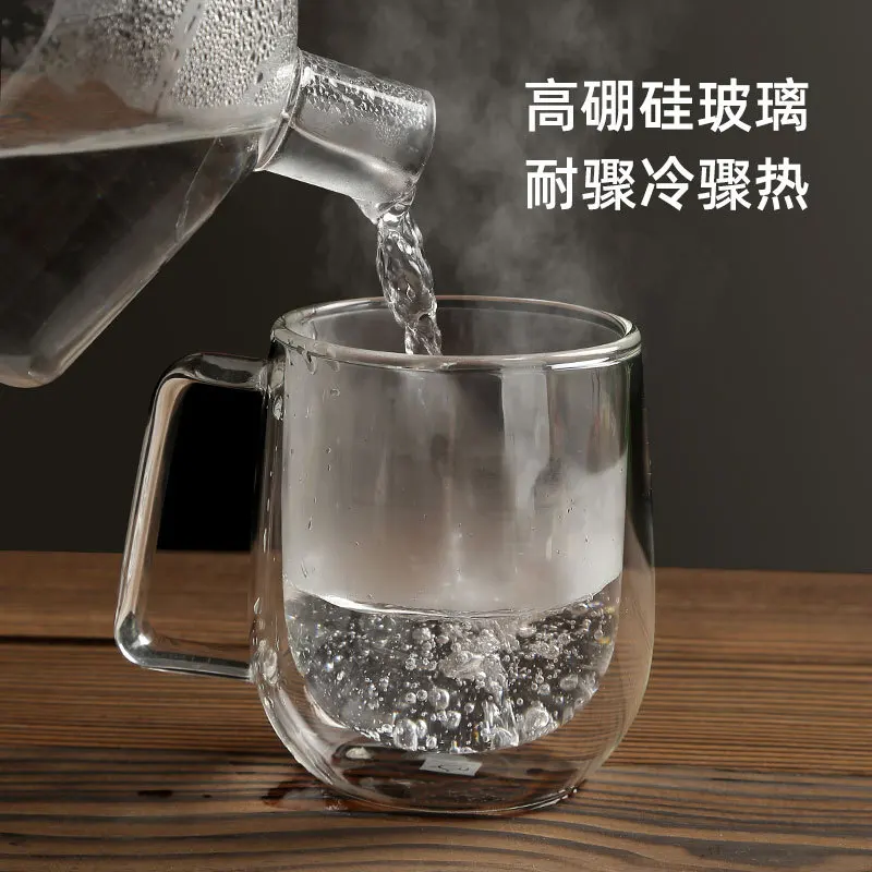 Двухслойное стекло, оптовая продажа, прозрачная чашка с ручкой для кофе, домашняя стеклянная чашка для воды, оптовая продажа