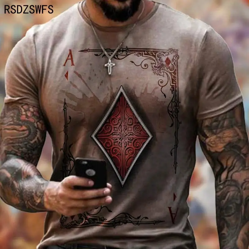 Футболка мужская с принтом игральных карт, свободная рубашка с 3D р...