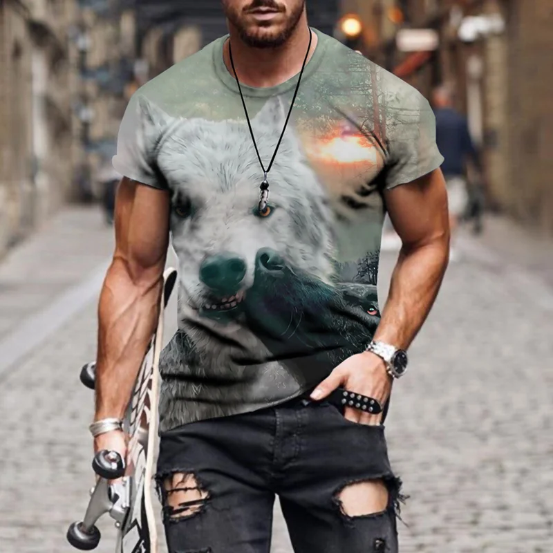 Футболка мужская с 3D-принтом волка, модная Повседневная рубашка с коротким рукавом, с круглым вырезом, в уличном стиле, лето