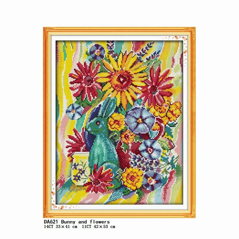 Набор для вышивки крестиком Joy Sunday, Набор для вышивки с рисунками кроликов и цветов 11CT 14CT, печатная нить, вышивка, украшение