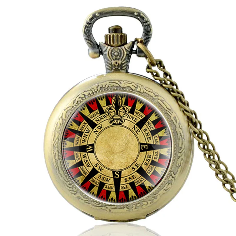 Бронзовый Классический Таинственный компас, стеклянный кабошон, кварцевые карманные часы, Винтажный Мужской и женский кулон, ожерелье, часы, подарки