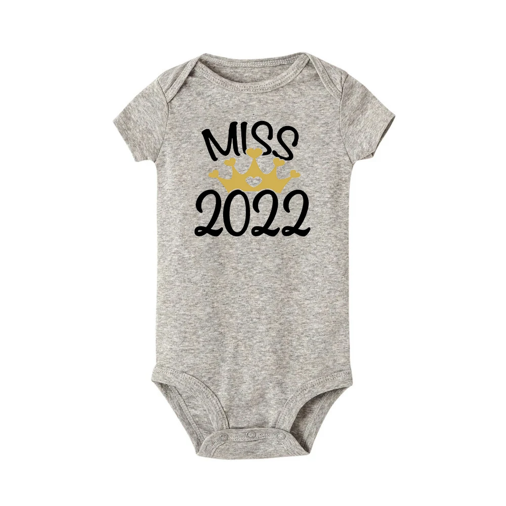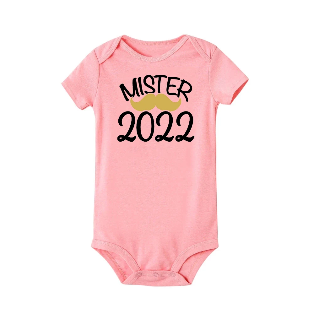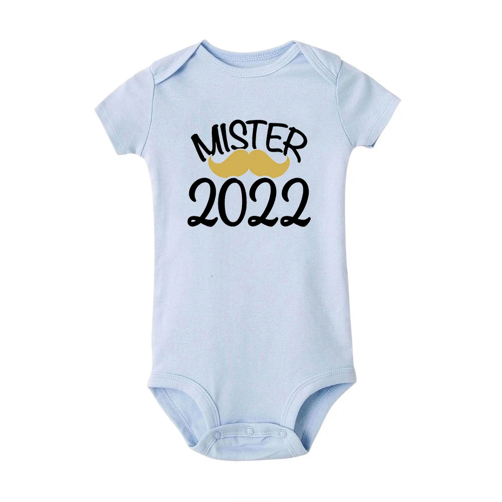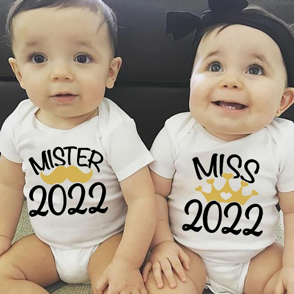 Мисс мистер 2022 Одежда для новорожденных младенцев с коротким рукавом Модный повседневный комбинезон для близнецов мальчиков и девочек новогодние подарки