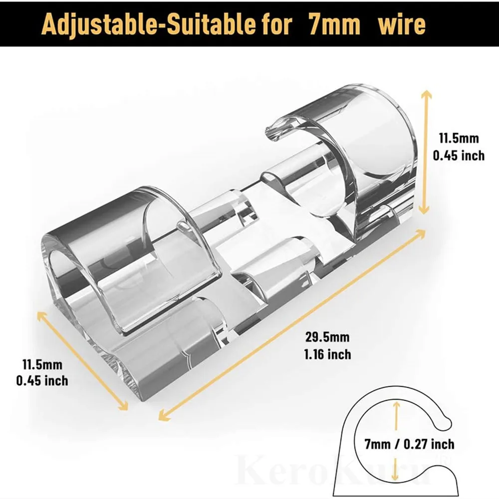Характеристики:Идеально подходит для подвешивания избыточного электрического кабеля и вилки.Легко организовать кабели и вилки.Можно прикрепить на стену, плитку, стекло и другую гладкую поверхность.Помогает убирать неприглядный грязный телевизор, DVD, ПК провода и кабели.Используйте органайзер для кабельных зажимов, чтобы ваши кабели были аккуратными и организованными.Тип: обновленная версия кабельных зажимов (супер жесткий)Материал: акрил высокой плотностиЦвет: черный, белый, прозрачныйКоличество: 20 шт.Подходит для: диаметр провода в пределах 7 ммХарактеристики: простой в использовании, линейный Органайзер, прочныйРазмеры: 1,1 см x 1 см x 3 см (прибл.)