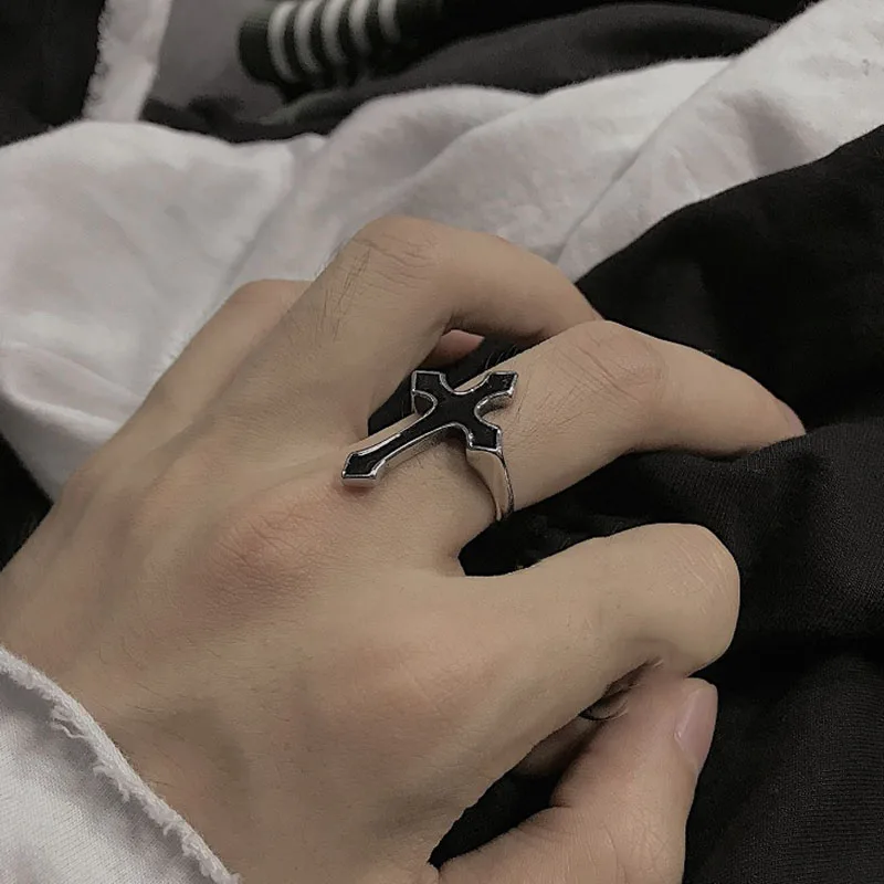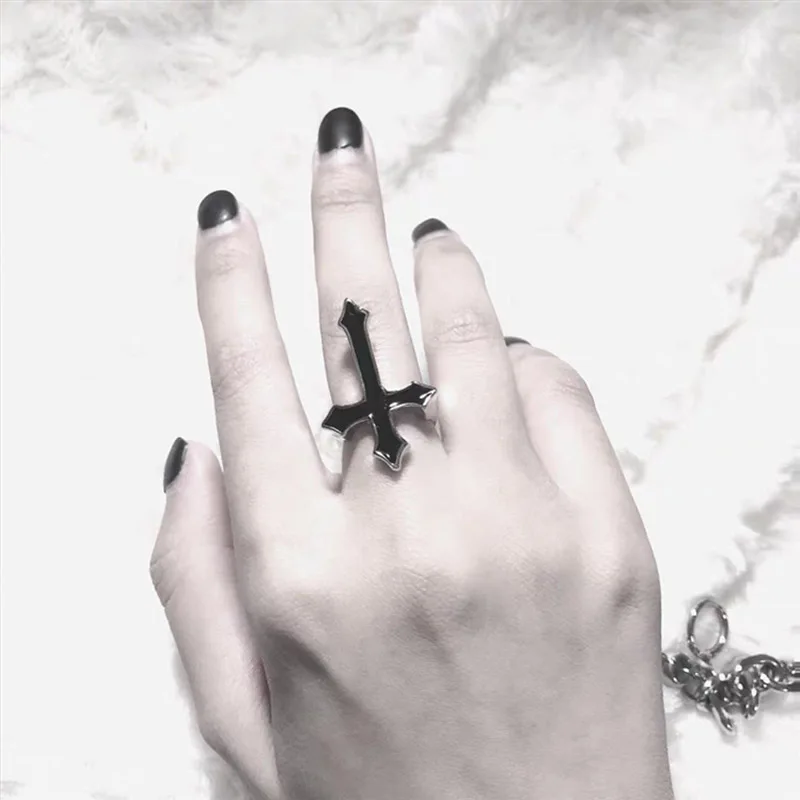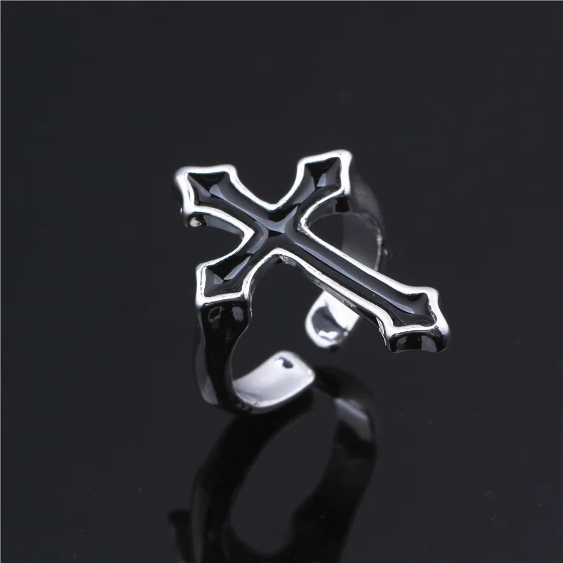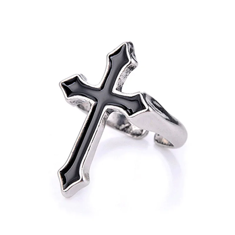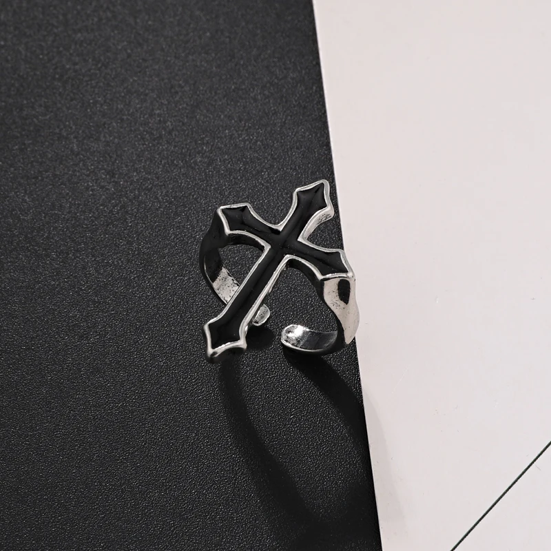 1 шт. винтажное черное большое открытое кольцо с крестом для женщин и мужчин, ювелирные изделия для вечеринок, модное готическое металлическое кольцо на палец, новогодние подарки, оптовая продажа