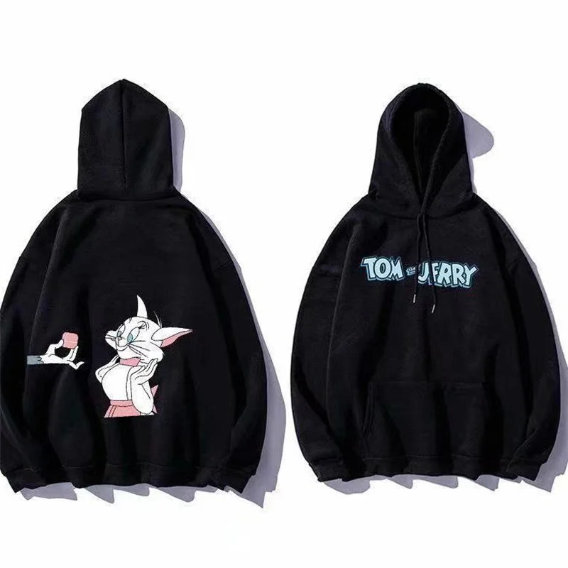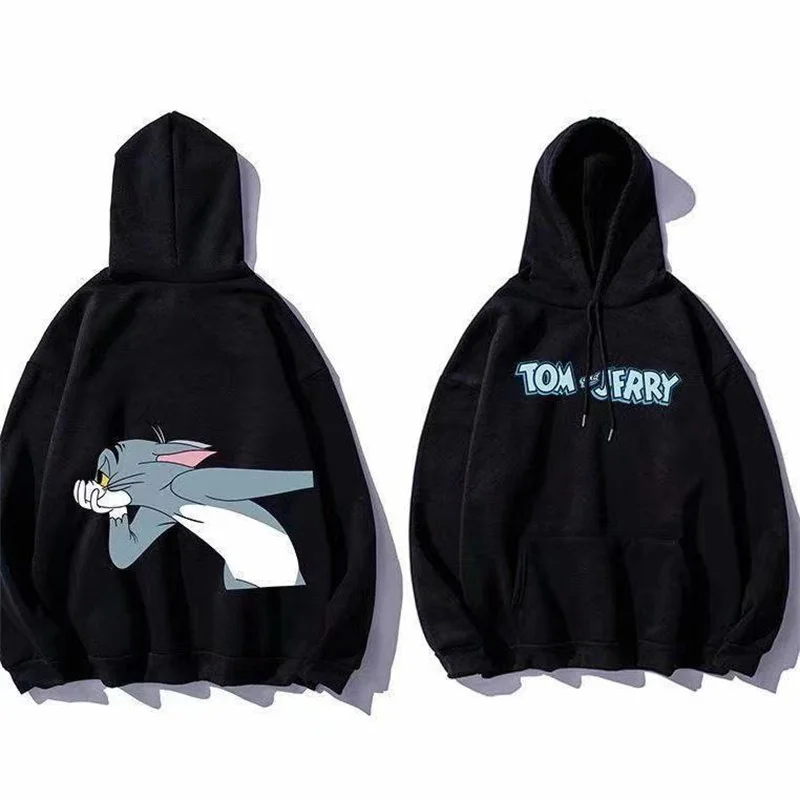 Толстовка с капюшоном для мужчин и женщин, милый кот, Том и мышь, Джерри, топ с мультяшным графическим принтом в стиле Харадзюку, свободная уличная одежда для пар, пуловеры