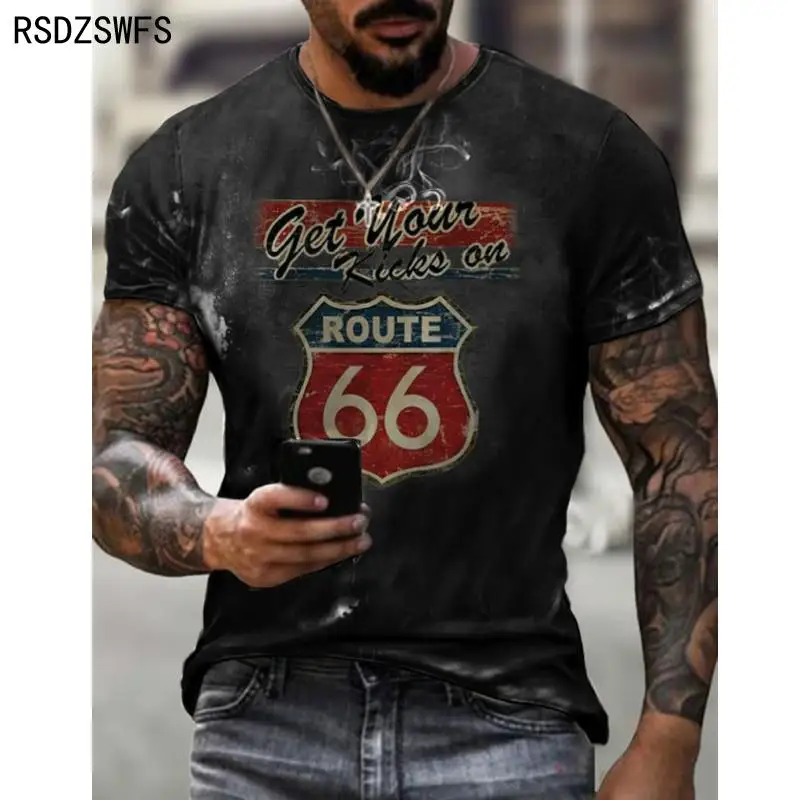 66 футболка в американском стиле дороги, спортивная одежда для мужч...