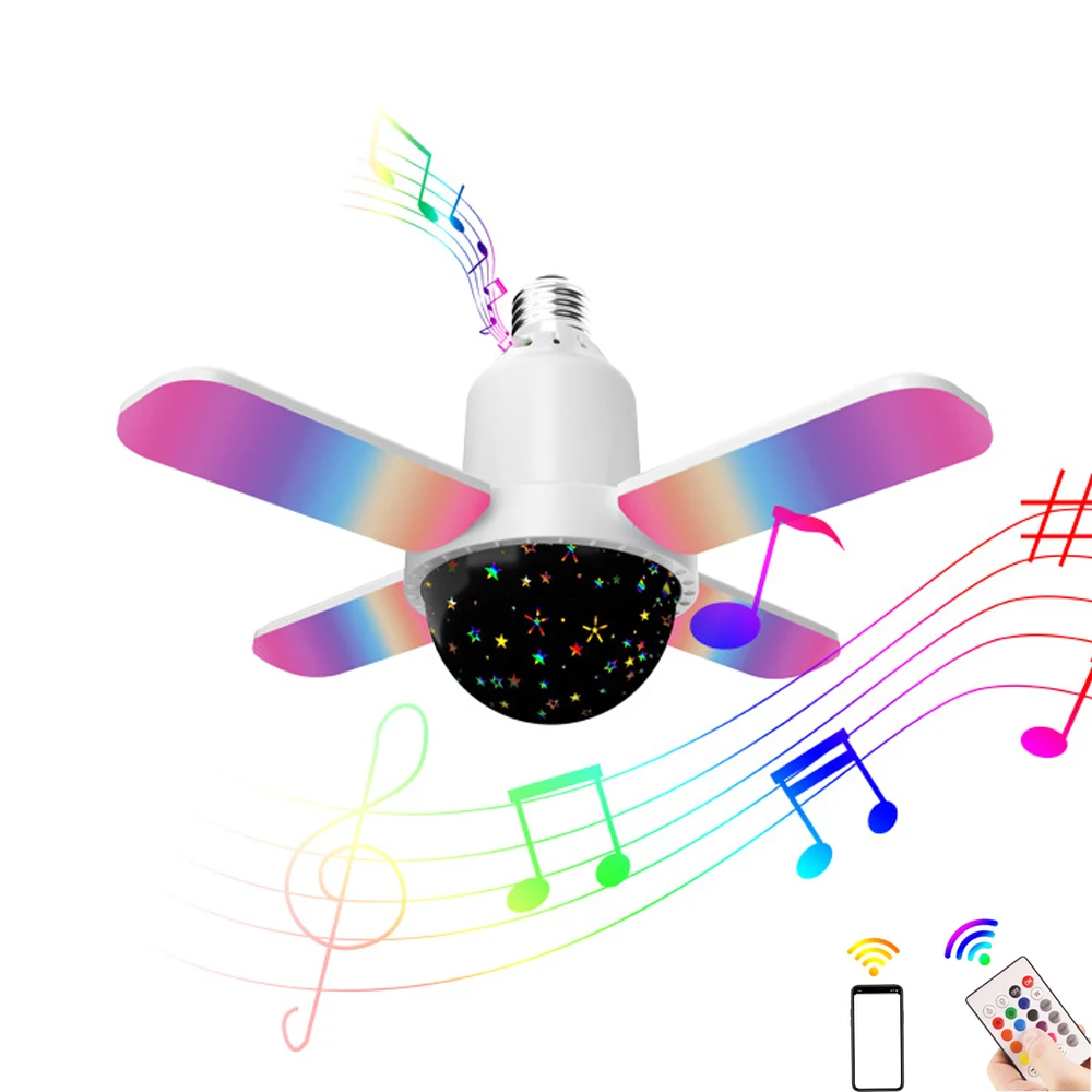 Умная потолочная лампа E27 с Bluetooth, музыкальный светильник, RGB LED лампа с четырьмя листами для деформации, складной ночник с дистанционным управлением
