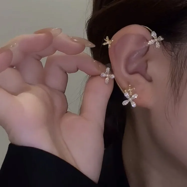 Посеребренные металлические клипсы-бабочки для ушей без пирсинга для женщин, сверкающие циркониевые клипсы для ушей, серьги-каффы, свадебная бижутерия 2021
