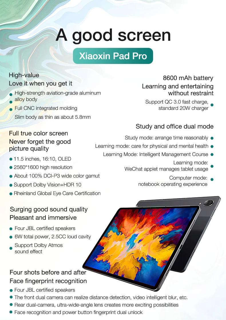 Lenovo XiaoXin Pad P11/P11 Pro Стандартный Упаковочный лист:Планшет * 1, зарядное устройство * 1, USB кабель для передачи данных типа C * 1, учетные данные * 1, карточный толкатель * 1, руководство по быстрому запуску и безопасности * 1Пожалуйста, обратите внимание: клавиатура, ручка и защитный чехол должны быть приобретены отдельно.Контроль качестваПеред отправкой мы откроем коробку для проверки качества или установки программного обеспечения.Если вы покупаете планшеты или телефоны: у нас нет доступа к Google из-за контроля безопасности Китая, поэтому планшеты изначально не были установлены Google Play, а язык только китайский и английский.Для вашего удобства, мы откроем посылка, чтобы вы установили Google Play и многоязычный, и повторно упакуем после установки. Вилка зарядного устройства по-прежнему является китайским зарядным устройством. (Если вы покупаете китайскую версию, эти операции не будут включены)Примечание: Мы предлагаем вам не восстанавливать фабрику или корень с другой версией прошивки, которая может привести к потере даты или утере телефона, и потерять нашу гарантию на ремонт Гарантия качестваОдин год гарантии магазина (китайский гарантийный сервис) Как я могу узнать, что телефон или планшет могут работать в моей стране или в моем местоположении?Http:/willmyphonework.net /.Информация, предоставленная на веб-сайте, только для справки. Вам необходимо подтвердить, доступен ли сетевой частотный диапазон, предоставляемый продуктом, в телекоммуникационной компании вашей страныПоставляется с наиболее полезными приложениями GoogleНезависимо от того, занимаетесь ли вы фотографией или просто поддерживаете своих друзей, для вас есть приложение. Выберите более миллиона приложений в Google Play. Google Play защитит ваше устройство и сохранит ваши данные. С более чем 100 миллиардами приложений, сканированных ежедневно, даже те, которые вы еще не установили, чтобы помочь сохранить ваши данные в безопасности от любых неправильных приложений. Получите приложения Google, которые вы уже знаете и любите на Lenovo Tab P11/P11 Pro.