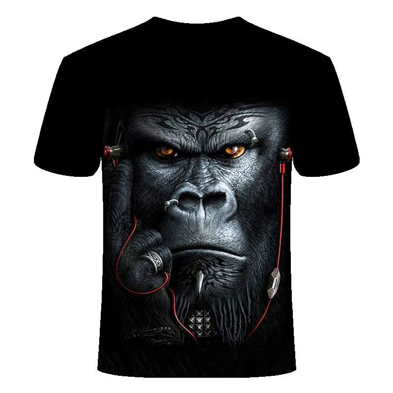 2021 Летняя мужская футболка с 3D принтом животных, обезьяны, горил...