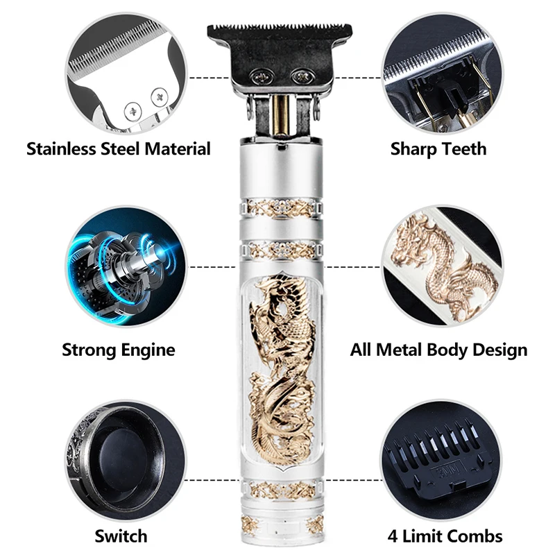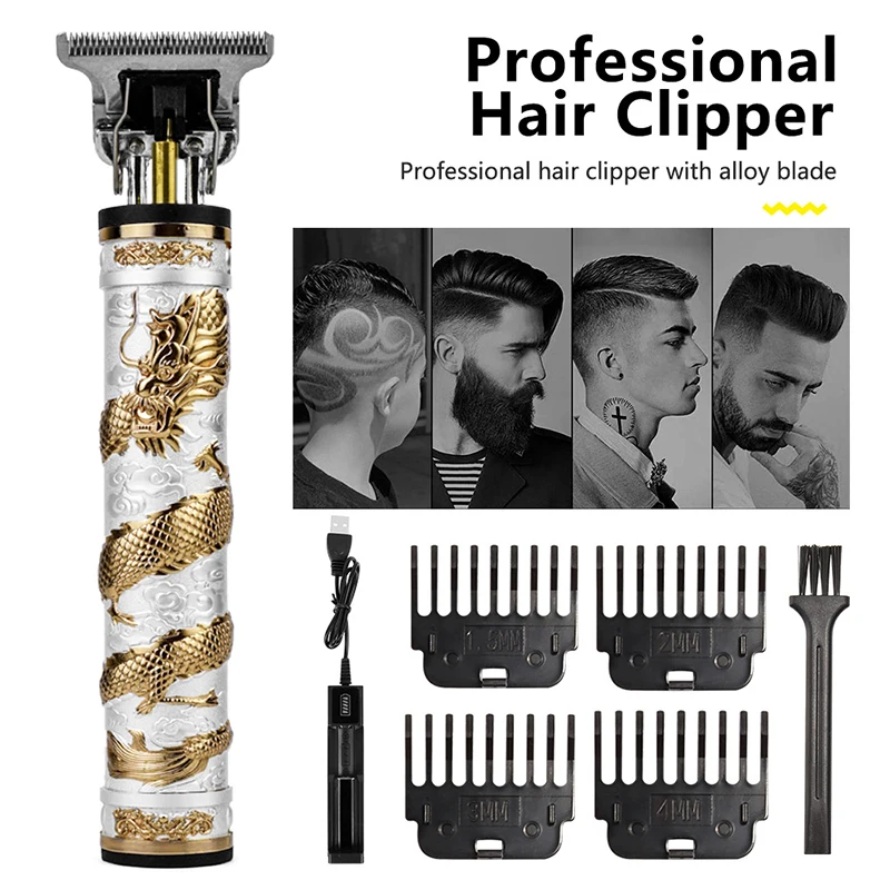 Электрическая машинка для стрижки волос T9, Профессиональный парикмахерский аппарат серебряного дракона для мужчин, USB зарядка, для бороды