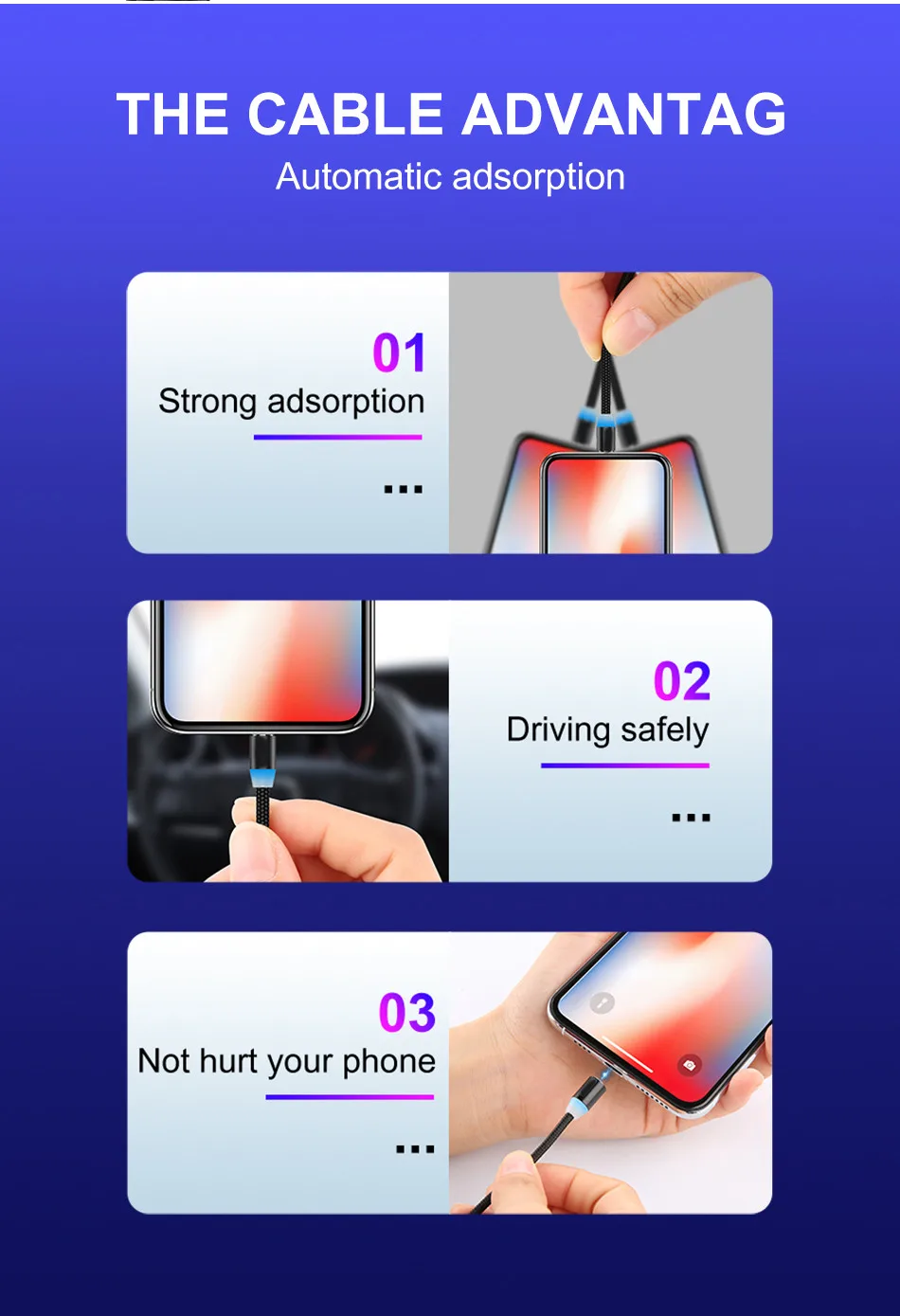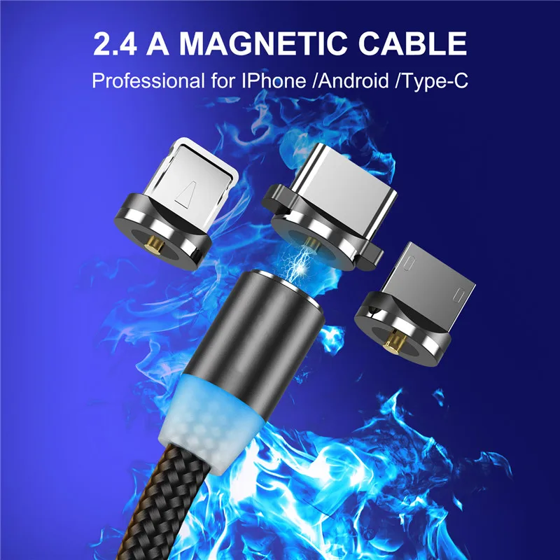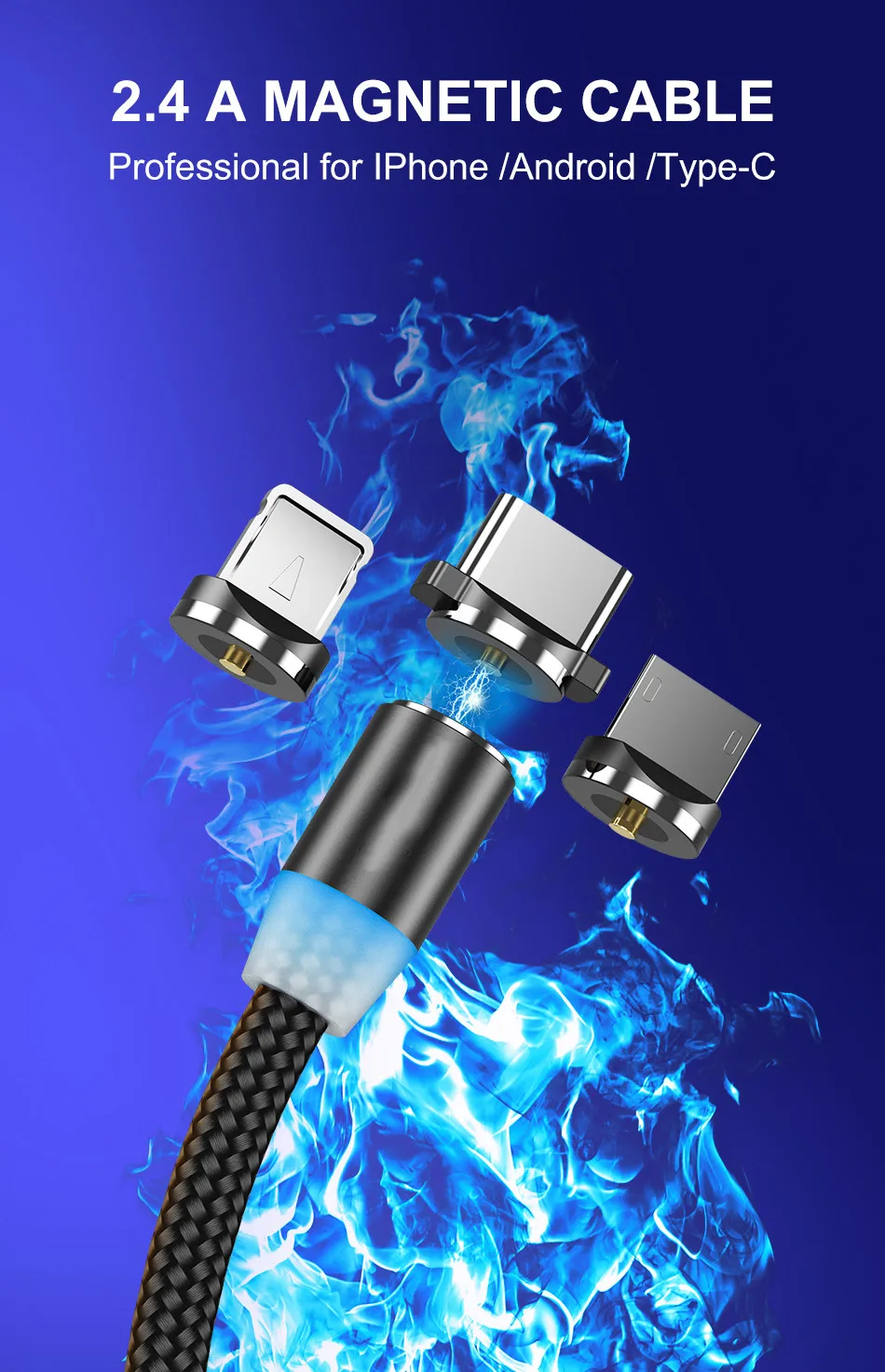 Магнитный кабель USLION, светодиодный кабель Type-C Micro USB для з...