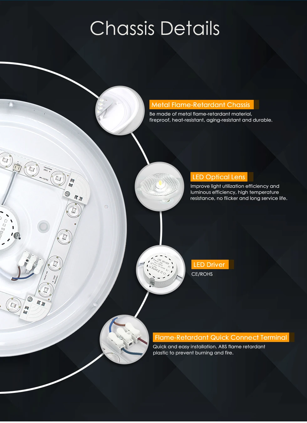 Особенности:1. Светильник без мерцания-защищает ваше зрение.2. Энергосбережение, легко моется.3. Элегантный дизайн: Новый flush¨установленный потолочный светильник так же универсален, как и бесценен. Гладкий и прогрессивный, но минималистичный дизайн обеспечивает эстетическую сплоченность с существующим украшением вашего дома, но обеспечивает современное прикосновение.4. Испытайте элегантность, которую этот шикарный и роскошный светильник приносит в любую комнату в вашем доме. Приглашаем гостей в фойе или используйте его на обычном переключателе, чтобы поставить светильник на кухню в вечерние часы!5. Чудесно яркий с оптическим объективом: Попрощайтесь с темными пятнами: красиво спроектированный светильник от края до края обеспечивает стабильное освещение по всему приспособлению, чтобы светильник на каждом углу дома.