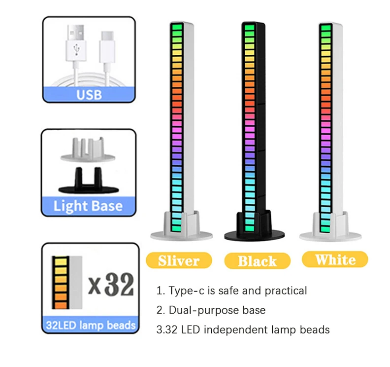 Музыкальная полоса с голосовой активацией, 32 светодиодный, USBпере...
