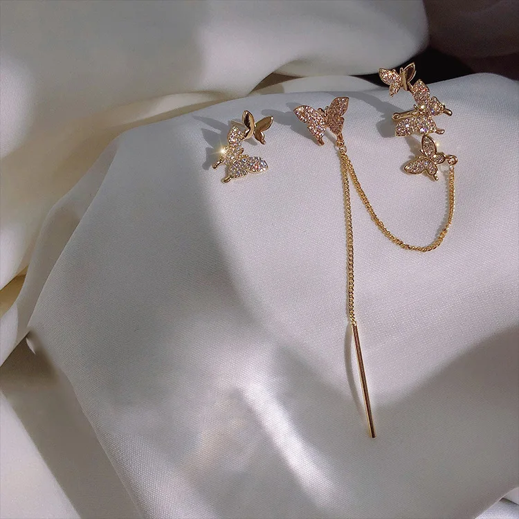 Блестящие циркониевые манжеты для ушей в виде бабочки, зажим для уш...