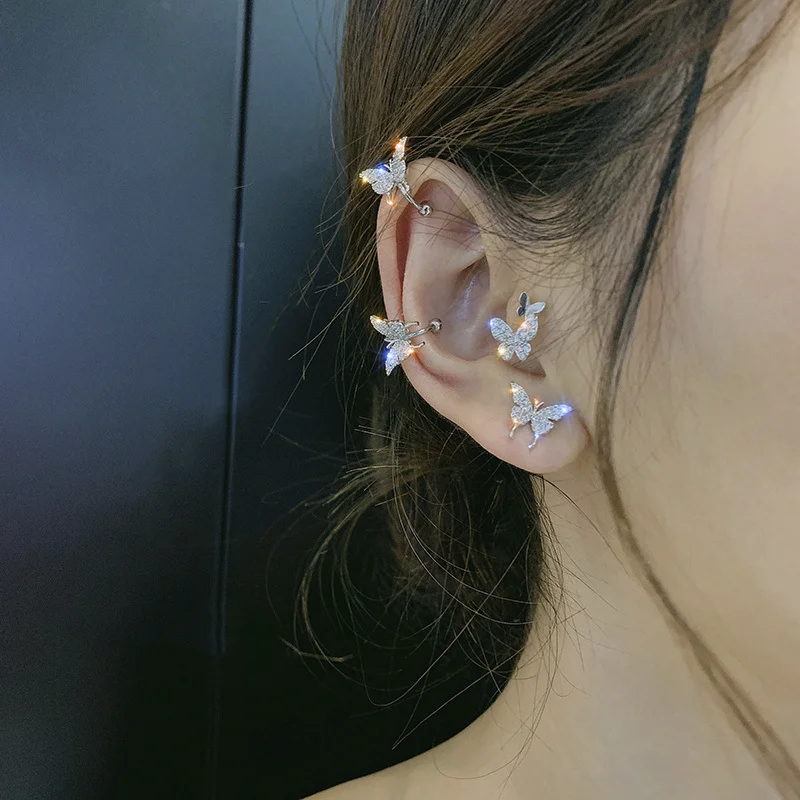 Блестящие серьги-бабочки для подъема ушей, без пирсинга, 1 шт., цир...