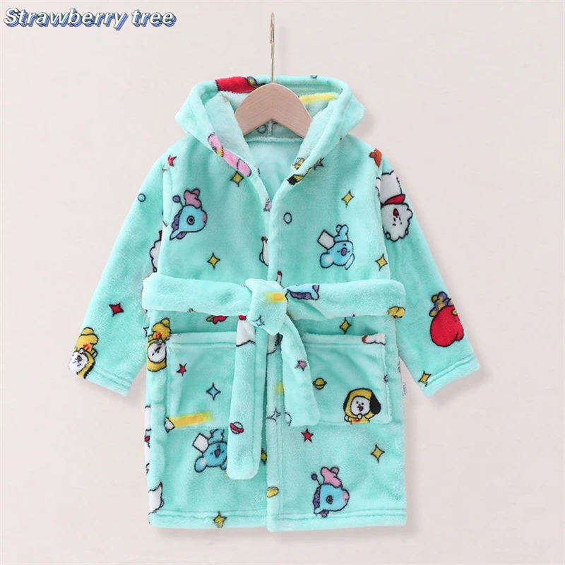 Детский фланелевый Халат с длинным рукавом, с мультяшным принтом фланелевый халат с героями мультфильмов для маленьких мальчиков и девочек, зимний повседневный теплый пижамный халат с длинными рукавами для детей