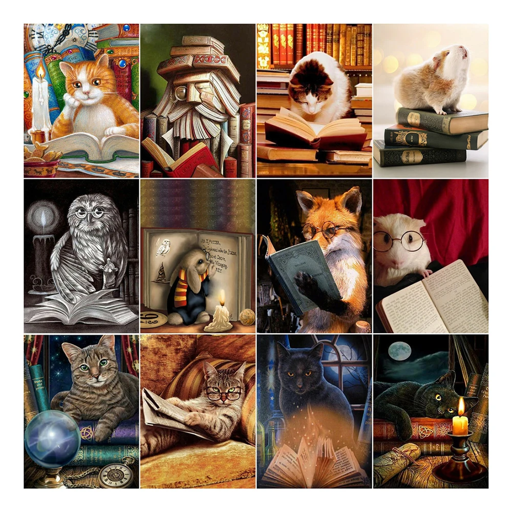 5D полноразмерная алмазная живопись сделай сам с квадратнымикруглыми стразами, кот, книга, морская свинка, мозаика, картина Стразы, алмазная вышивка, украшение для дома, подарок icon star icon star icon star icon star icon star